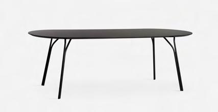Wooden frame, elastic belts, memory foam (FR foam upon request), upholstery (all fabric and leather price groups and COM) with black painted metal legs