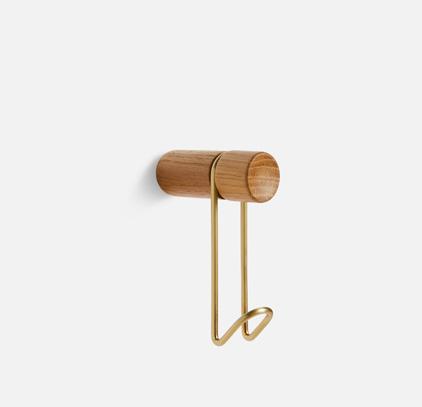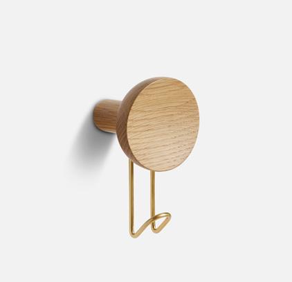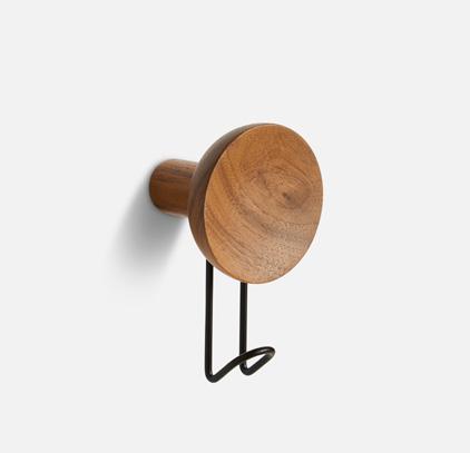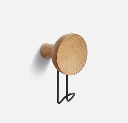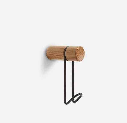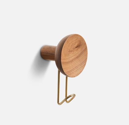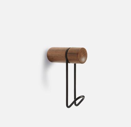 Solid oak/walnut with painted/plated metal hook