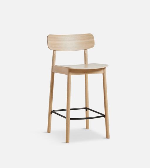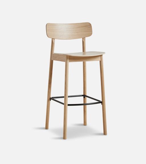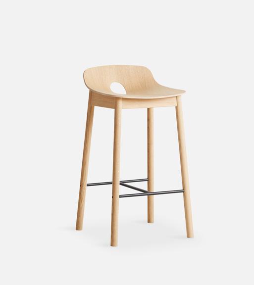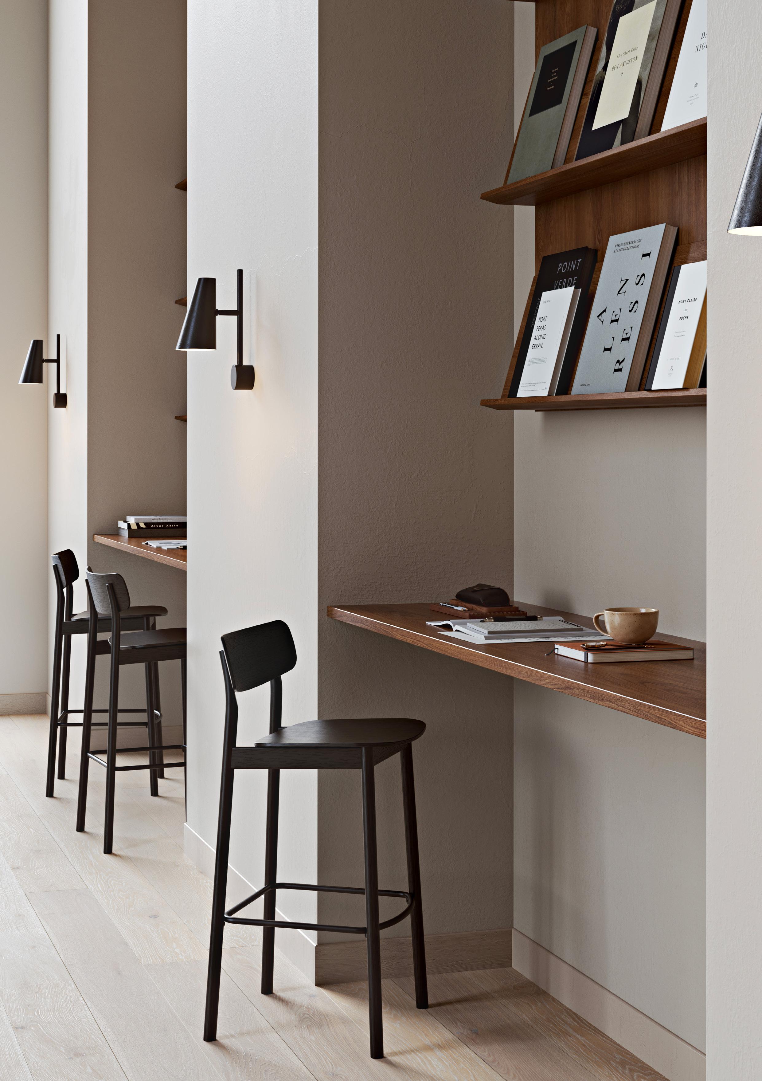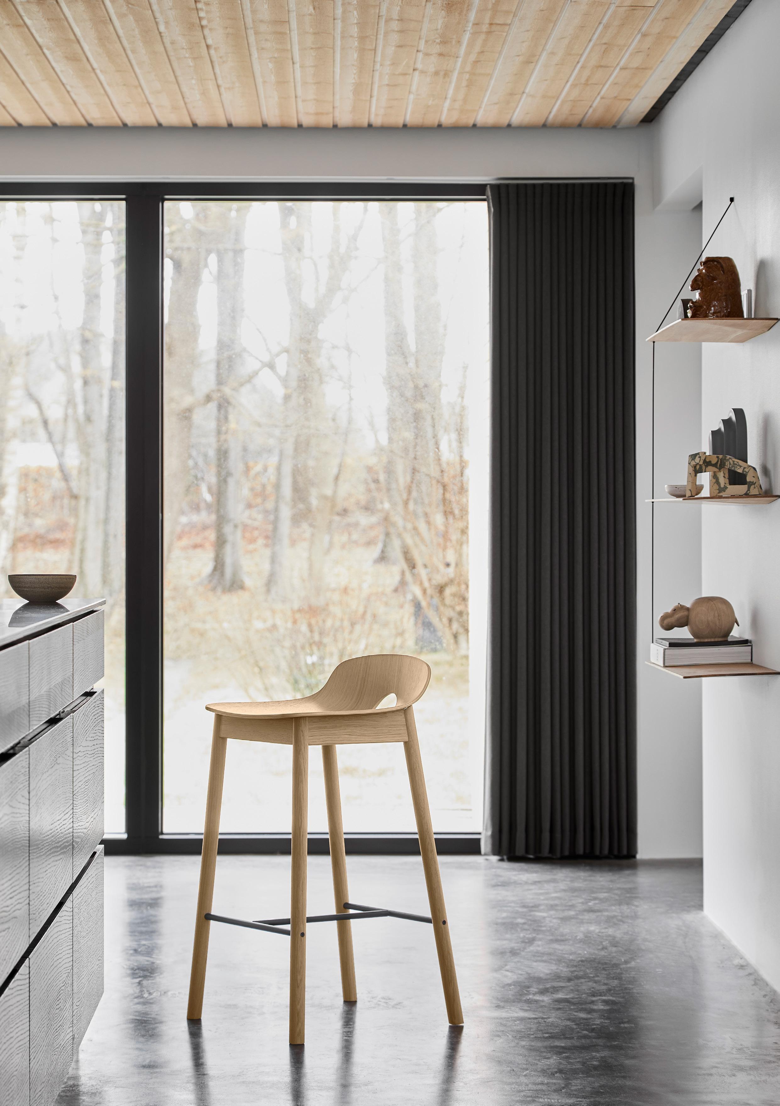 Crafted with sleek modernity, the Mono stool forms a refined expression rooted in the Scandinavian design tradition. Its low backrest ensures the perfect balance between comfort and a visually light appearance Mono is available in both oak and black finishes and comes in both bar and counter heights, offering versatility to suit your needs.