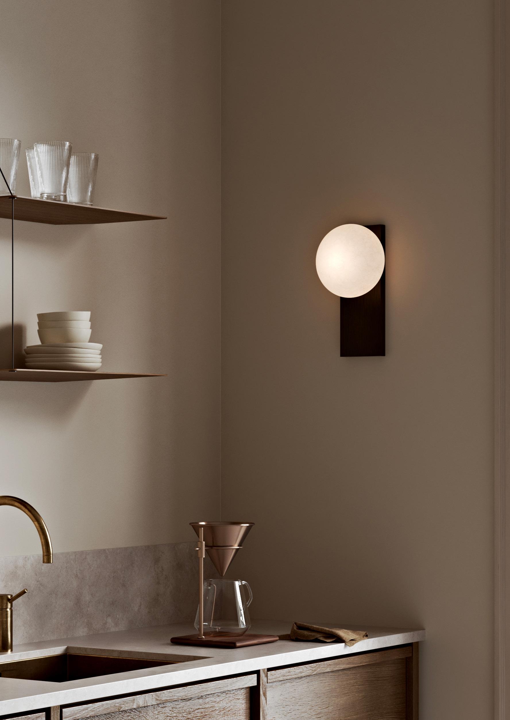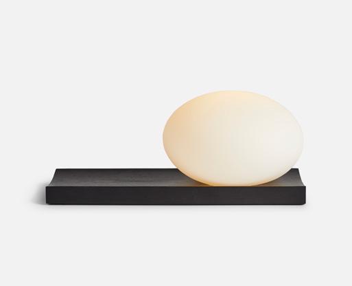 Formed by a glowing ellipsoid opal glass, resting on a soft solid wood tray, the Dew lamp is a contemporary take on archetypal lanterns. With its portable character, the versatile piece functions both as a dynamic table and wall lamp, while its dimmable feature allows you to change the mood and intensity of the light to suit the specific setting.