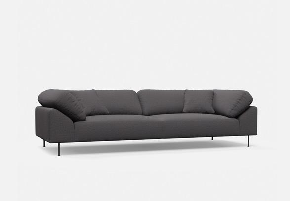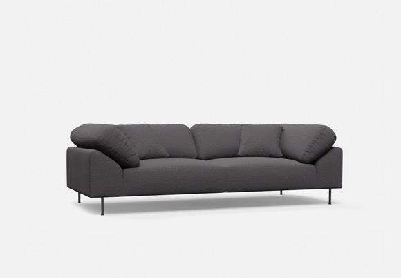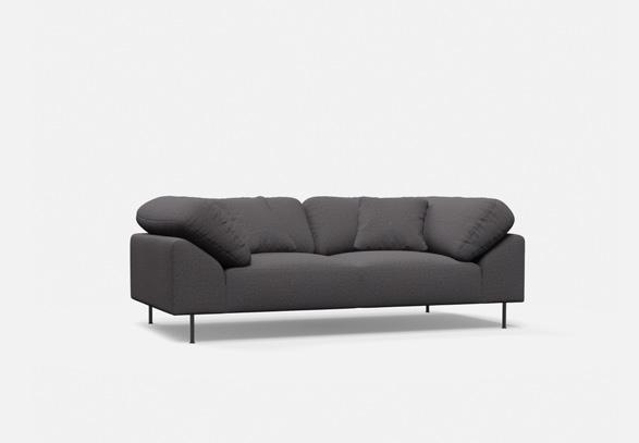 Wooden frame (FSC Mix C redit) , foam (FR foam upon request), f abric/leather (all fabric and leather price groups and COM) and black plastic feet. Choose between the original black fabric piping (Davis, Ontario) or piping in the same fabric as the sofa.