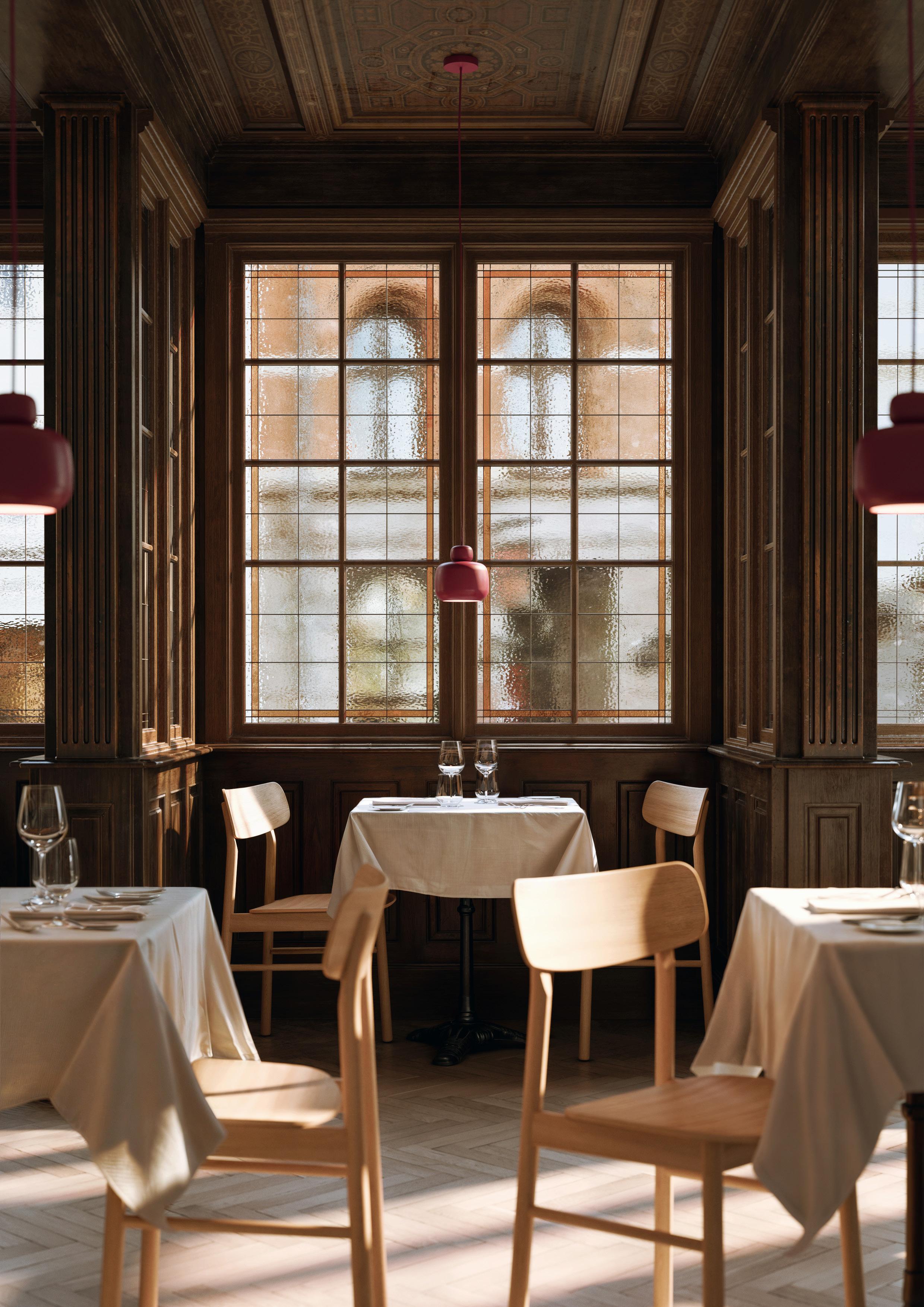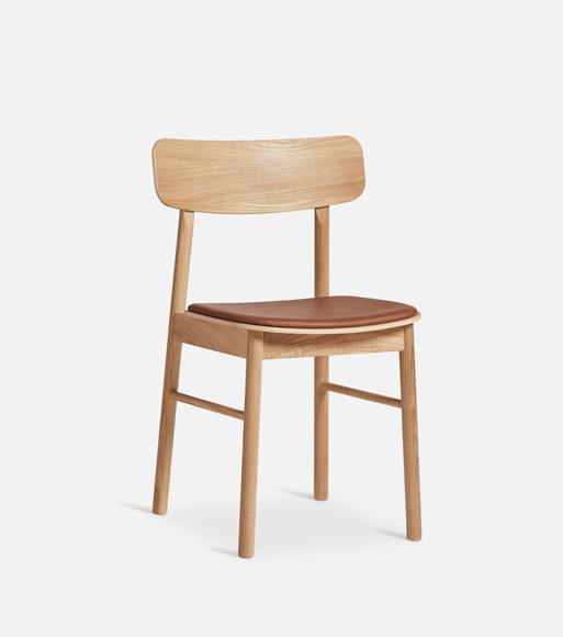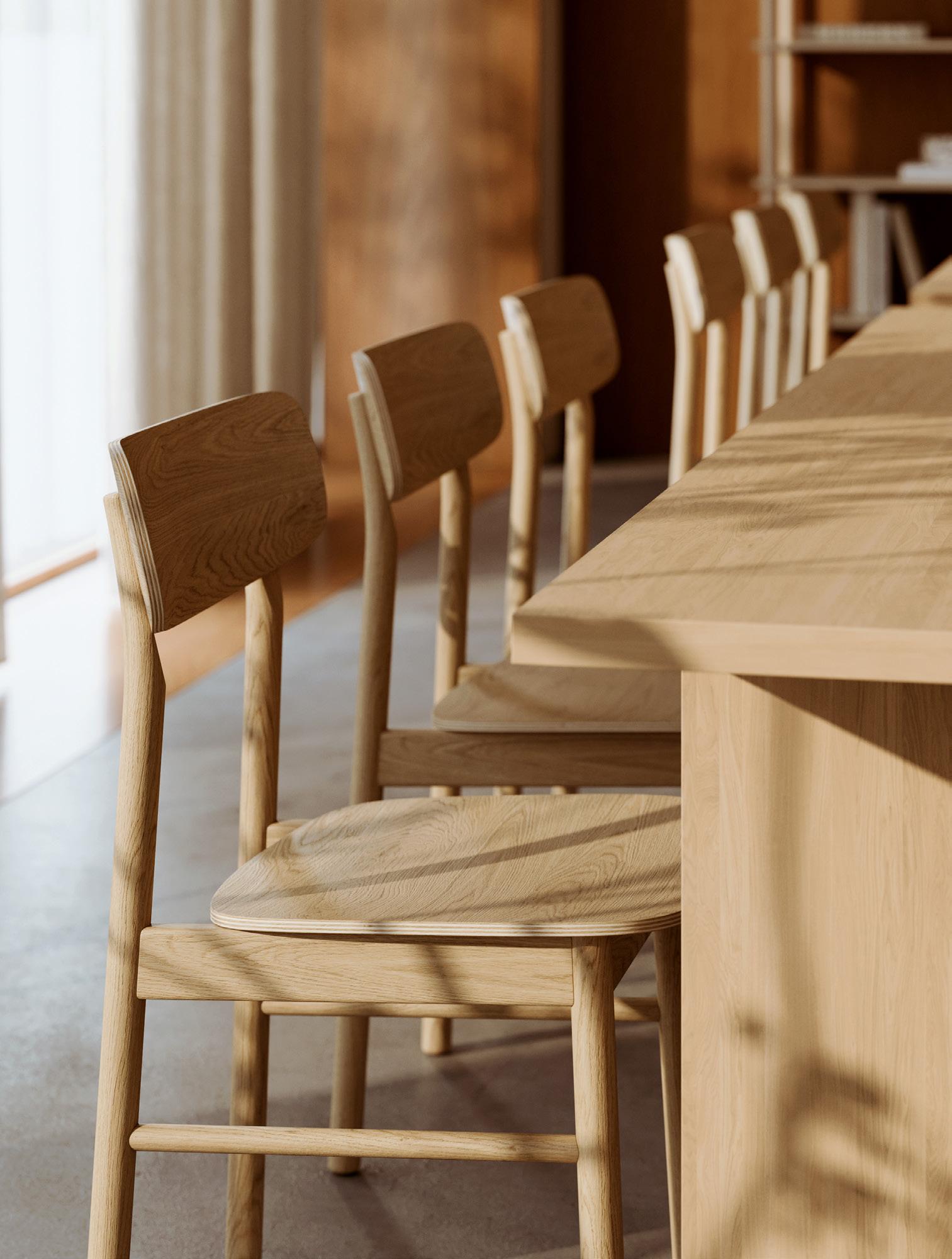 The dining chair is available in an appealing range of finishes. From the characteristic Scandinavian white pigmented oak to the modern and intense black version. For extra comfort, choose the chairs with a fixed upholstered seat in high-quality leather.