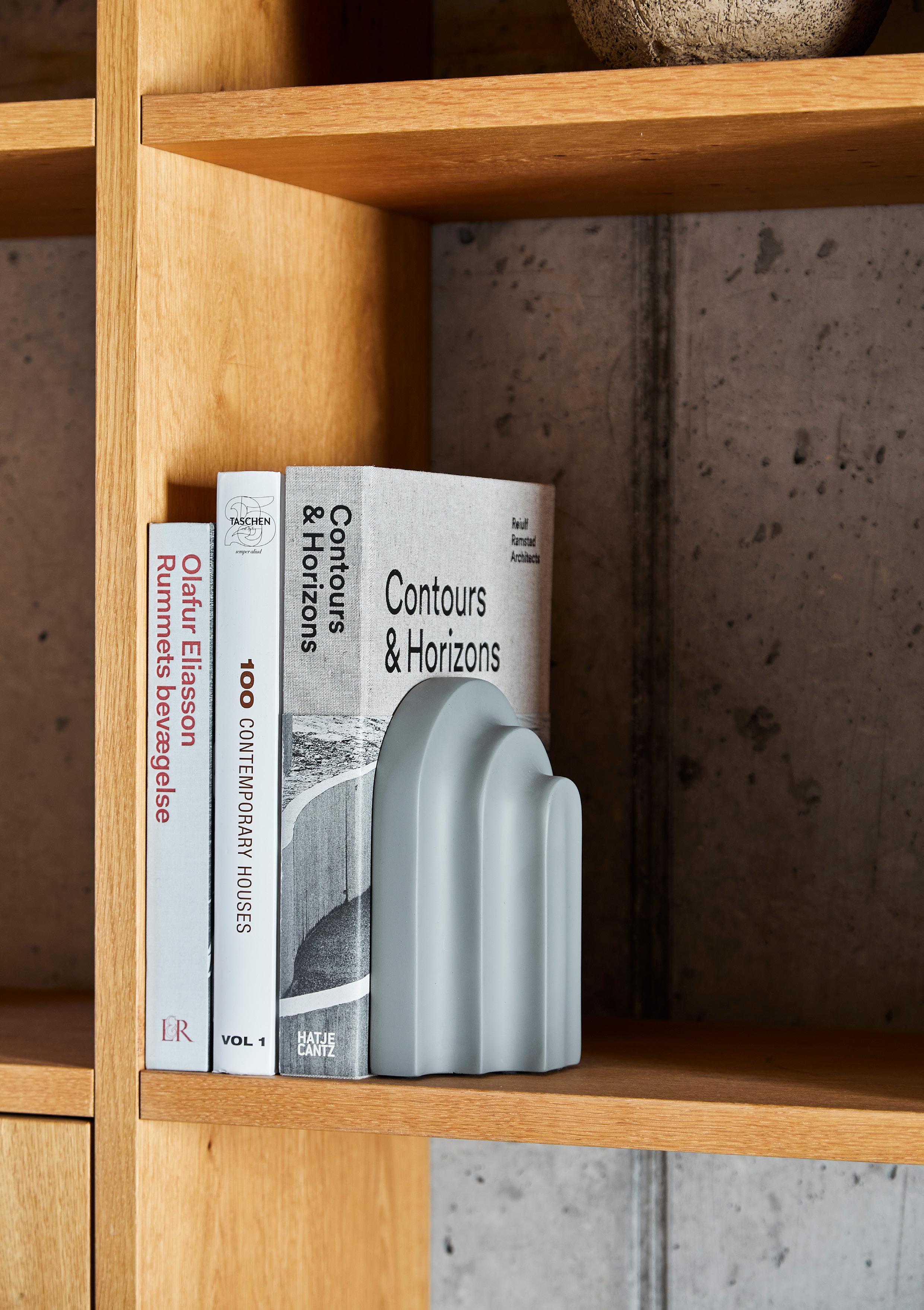 Together with a row of books Arkiv forms a small graphic ensemble of arches and blocks. With its vivid shape, the bookend catches the light and throws harmonious shadows revealing a fascinating and delightful piece to the eye. Lean your favourite books against Arkiv, lay it horizontal to function like paper press or use it as a decorative piece of art.