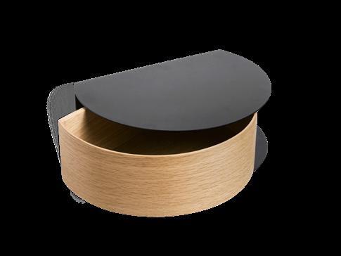 Wallie is a wall-mounted drawer that has a magnet encased in the wood so it smoothly catches the metal bracket. The combination of metal and bent wood makes Wallie portray itself as minimalistic, light and modern. With its circular, soft shapes and small storage space, Wallie is both minimalistic and functional. A small shelf, a drawer and an aesthetic object in one. Place it in the hallway or next to the bed.