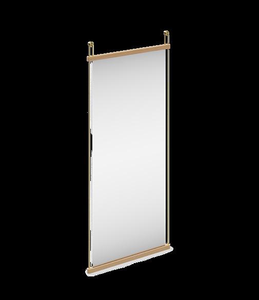 The Suspended wall mirror epitomises simplicity and beauty, crafted to harmonise with various atmospheres as a classic, lifelong piece. Featuring an elegant frame of horizontal oak slats and vertical metal rods, the mirror forms a visually distinct construction that secures the glass while providing an honest, airy aesthetic.