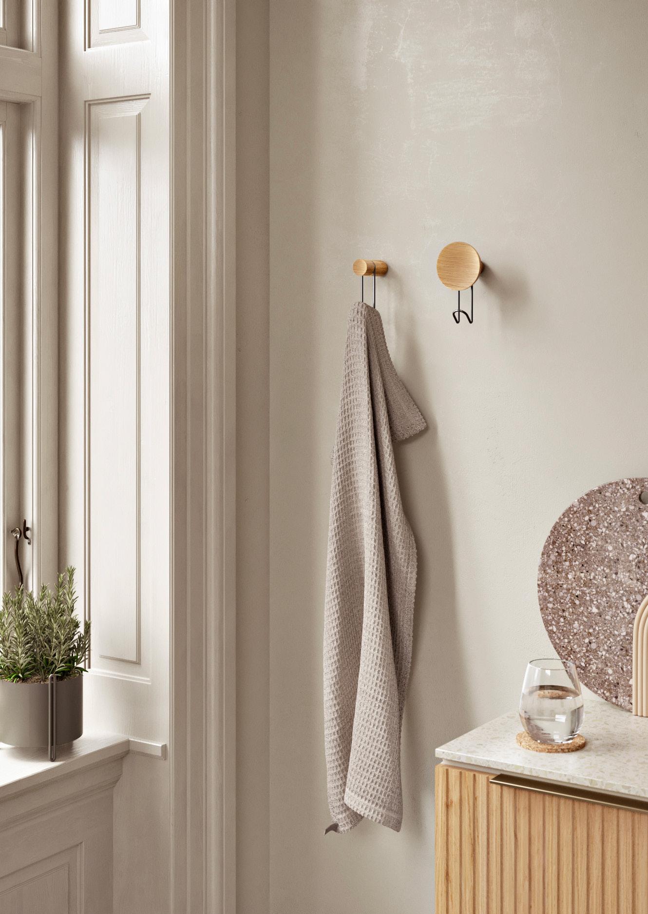 Simple yet graphic, the Around wall hangers combine interesting aesthetics by merging soft wood with bent metal. Available in two sizes and a variety of finishes, they can be mixed and styled to create artistic or clean arrangements. A versatile piece that will beautify every wall.