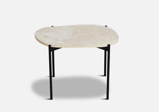 Travertine table top with black painted metal legs (smooth surface)
