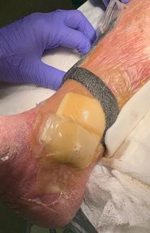 Animal studies have shown that Omega-3 fatty acids in the fish skin graft have an inhibitory effect on bacterial growth, improve epithelial cell migration, angiogenesis and accelerated blood perfusion in the wound bed.4,5 By incorporating aggressive wound debridement/ preparation and application of NPWT, as well as applying the standard tenets of wound management (reduction of bioburden/ infection and adequate offloading), these wounds can heal considerably faster compared to conventional wound care.1