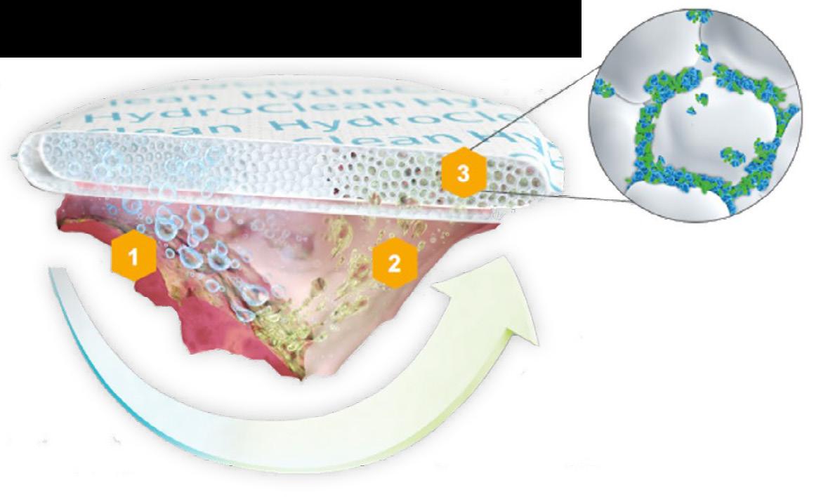 conductive structures within a plastic film, which is then combined with the dressing allowing monitoring of the temperature and humidity underneath; a significant increase in either parameter could be an indication of inflammation, infection and/ or disruption of healing.