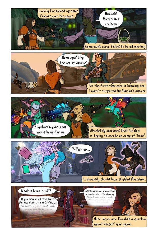 For so very long, players have yearned for a place in the game to make their own, roleplayers not the least of which! The opportunity to finally have our own customizable homes in-game has no doubt drawn countless players back from retirement, eager to design and build and dream. We hope this inspired collection of comics by our incredible contributors delights and entertains you, reader; perhaps, even compel you to muse on your own character’s humble lodgings. Let us invite you in as our guest! Welcome home, dear reader... Welcome home.