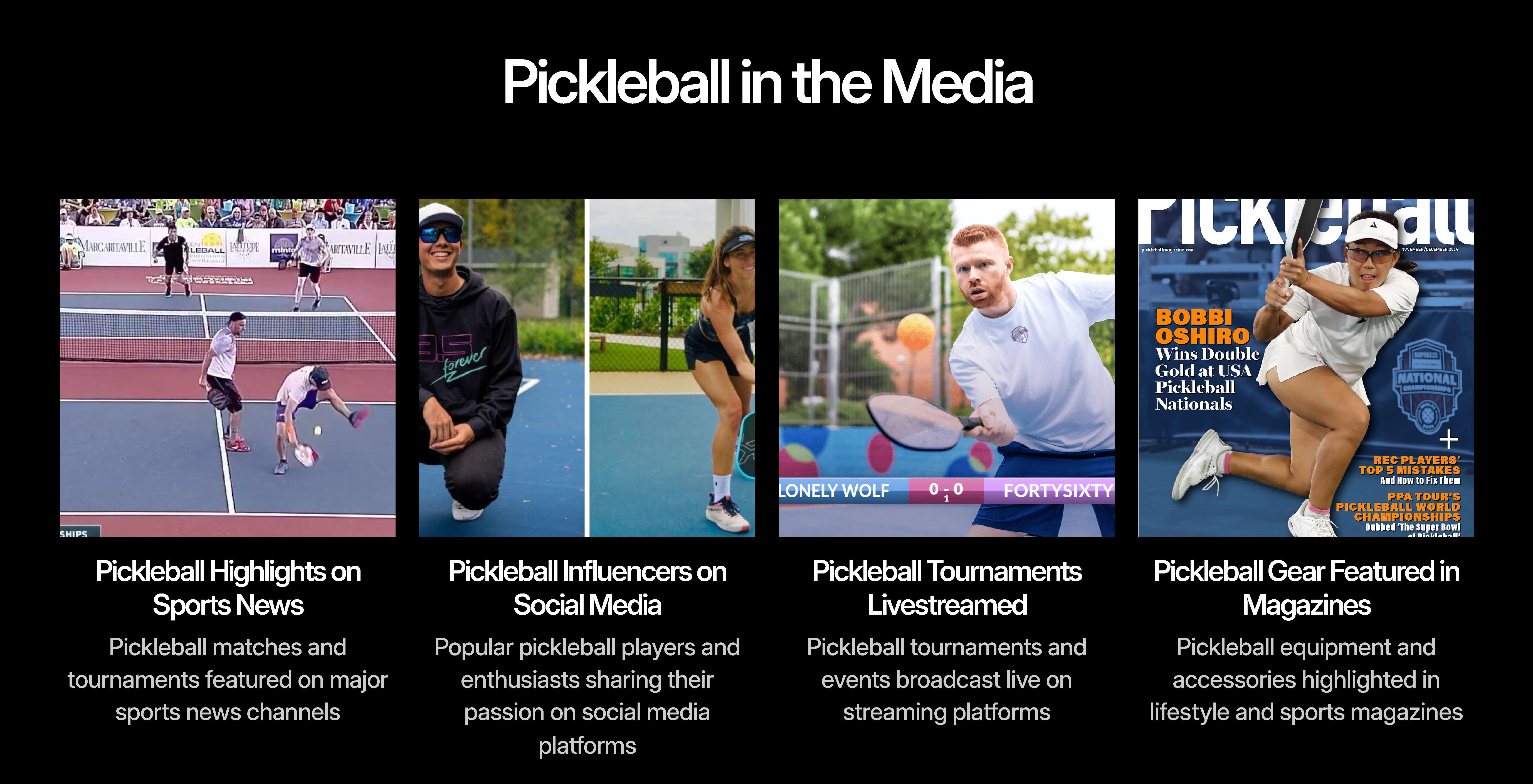 • Cinematic: 1 minute video feature created and aired on Inside World PB and Pickleball Channel.