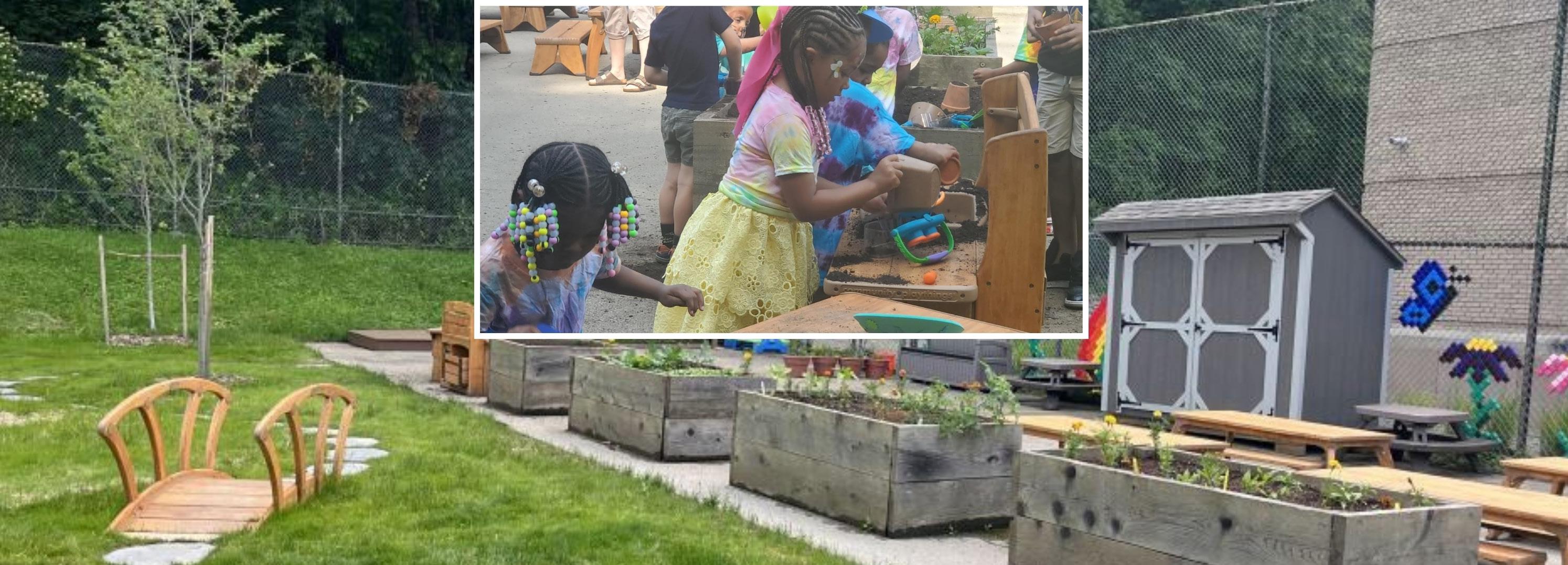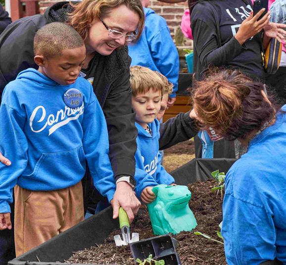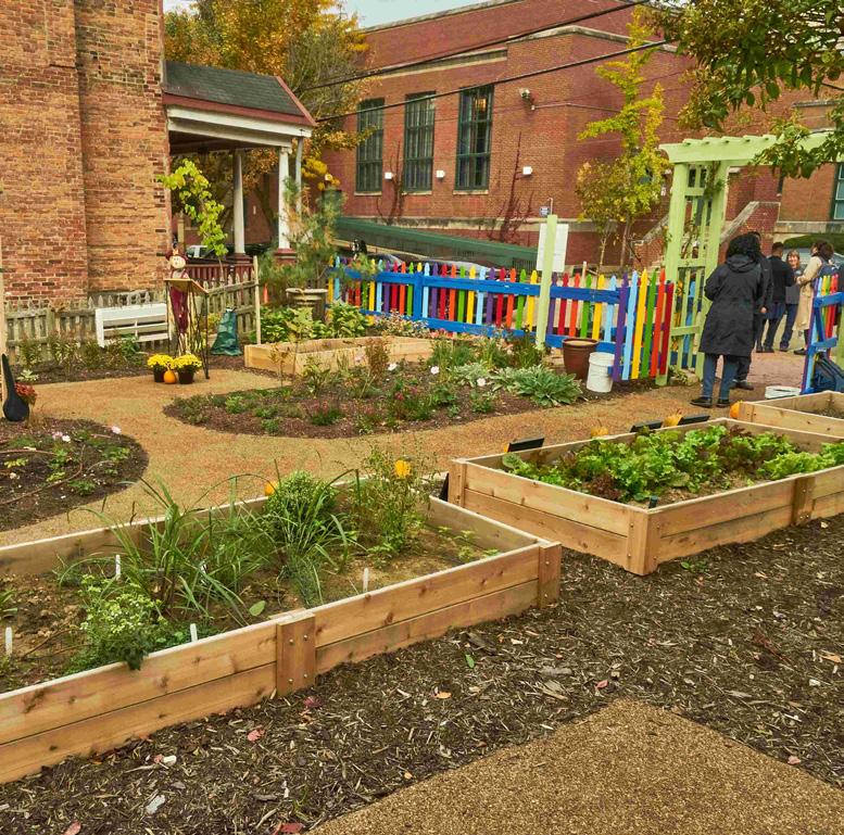 These outdoor spaces help children connect to nature by creating opportunities for play, learning and socializing, while helping educators facilitate hands-on experiences and naturebased learning. Research shows that time spent outdoors learning provides a wide range of benefits for children, including creativity, imagination, curiosity, problem-solving, discovery, observation, experimentation and social interaction. These schoolyard transformations have environmental benefits, too, by creating habitat for birds, improving air quality, providing shade and reducing stormwater.