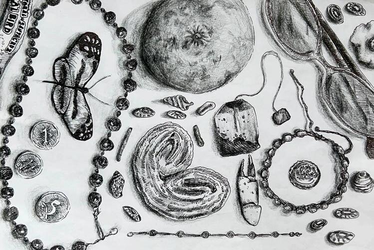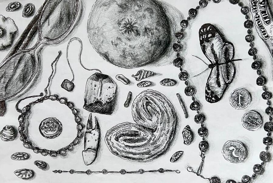 From sentimental objects to archaeological discoveries, our contributors knew how far to push this theme. Sarah Valenzuela’s “An Inventory of Silence” places readers inside the deafening pit of grief while beautifully describing the many keepsakes that seem to always surround us when we most need them. Layla Decker’s “Driving Home” unveils how vital memory is when you’re on the road and missing home. Jae Renette’s “Tongue Tied” twists a traditional love poem as she unveils that what is left of her memory is the weight in her chest. Lidia Téllez Flores describes the sweet smelling streets of Plaza Moralillo in Tepexi as she wonderfully captures the value of souvenirs in her poem “Recuerditos.” “Etruscan Tombs,” written in the sestina form by Jeremiah Scott, places us inside the 3,000-year-old Etruscan necropolis in the town of Cerveteri, Italy. Scott chooses the perspective of an itinerant traveler who stumbles upon them, utterly abandoned, and lacks knowledge of their history or contents Emma Fleming’s “The Button” shows us how value can be given to even the most unassuming objects