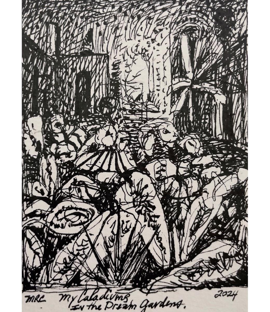 Floating Worlds Series: My Caladiums, 2025 oil on birch panel