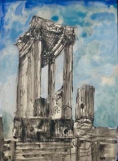 Floating Worlds Series: Garden of Vestal Virgins with Temple of Antoninus, 2024-25 oil on wood panel