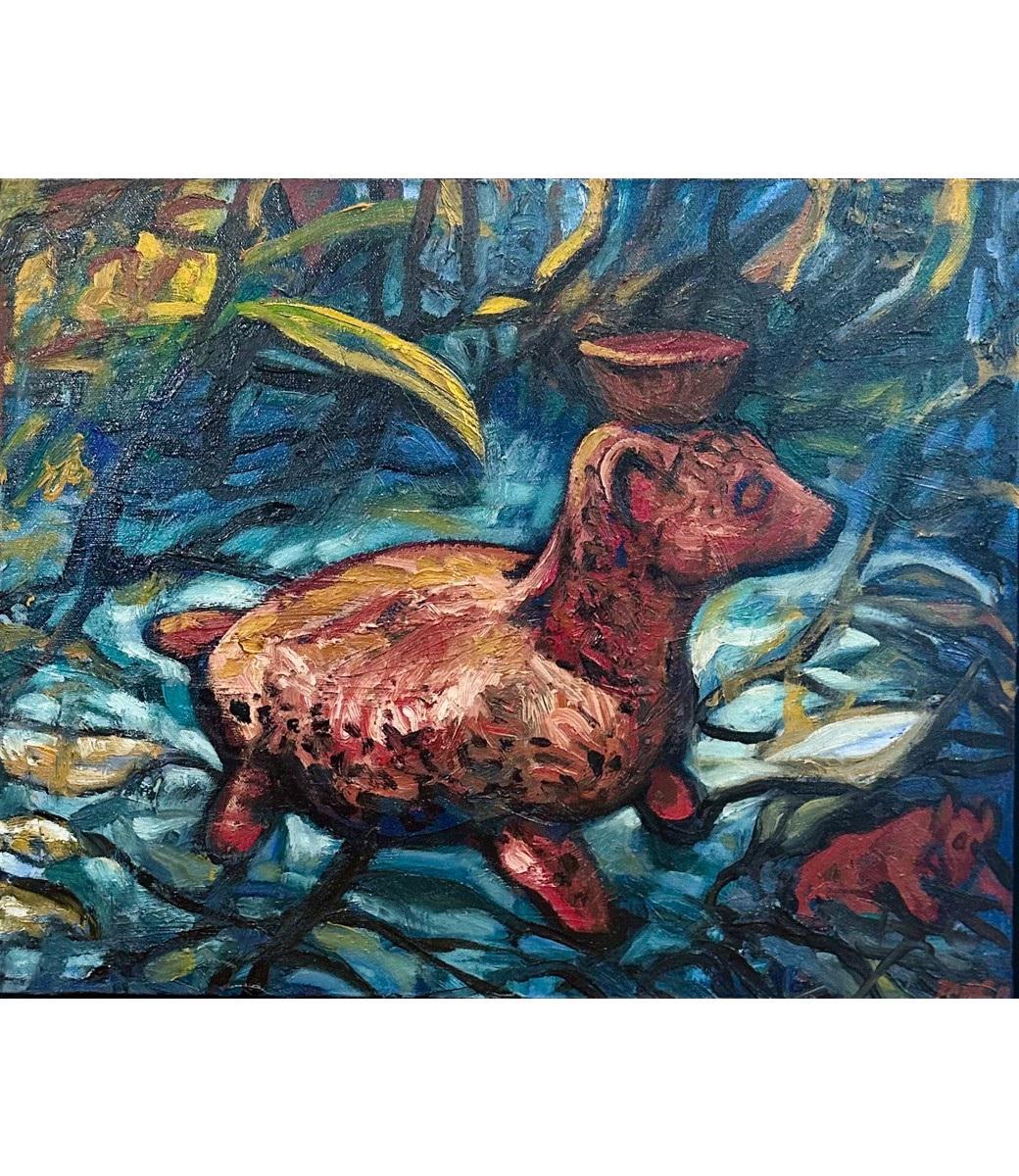 Reliquaries Series: Colima Dog, 2018-19 oil on linen