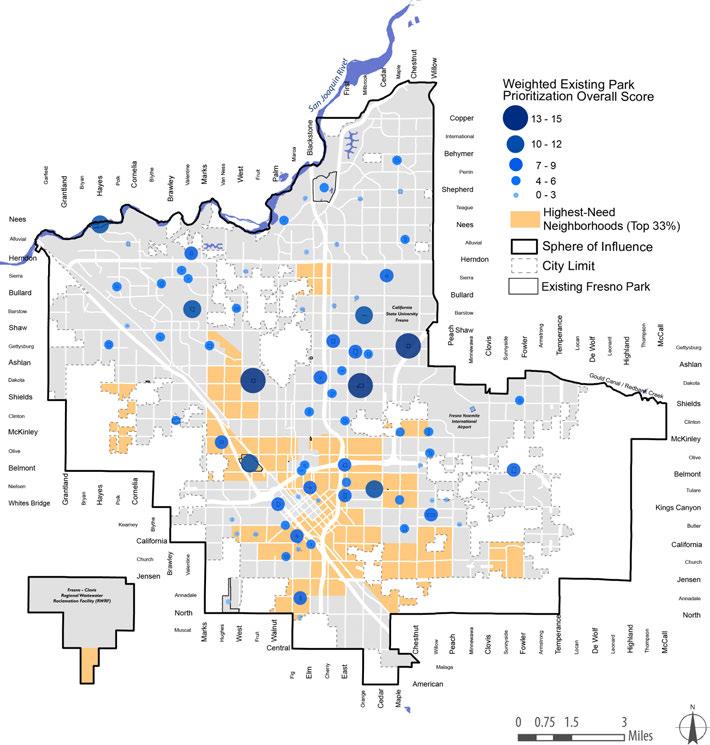 • Limited Park Land in Urban Areas: There is insufficient park land to meet the needs of a growing Fresno, and a critical need for new park development in higher density urbanized areas that have extremely limited land available for new parks