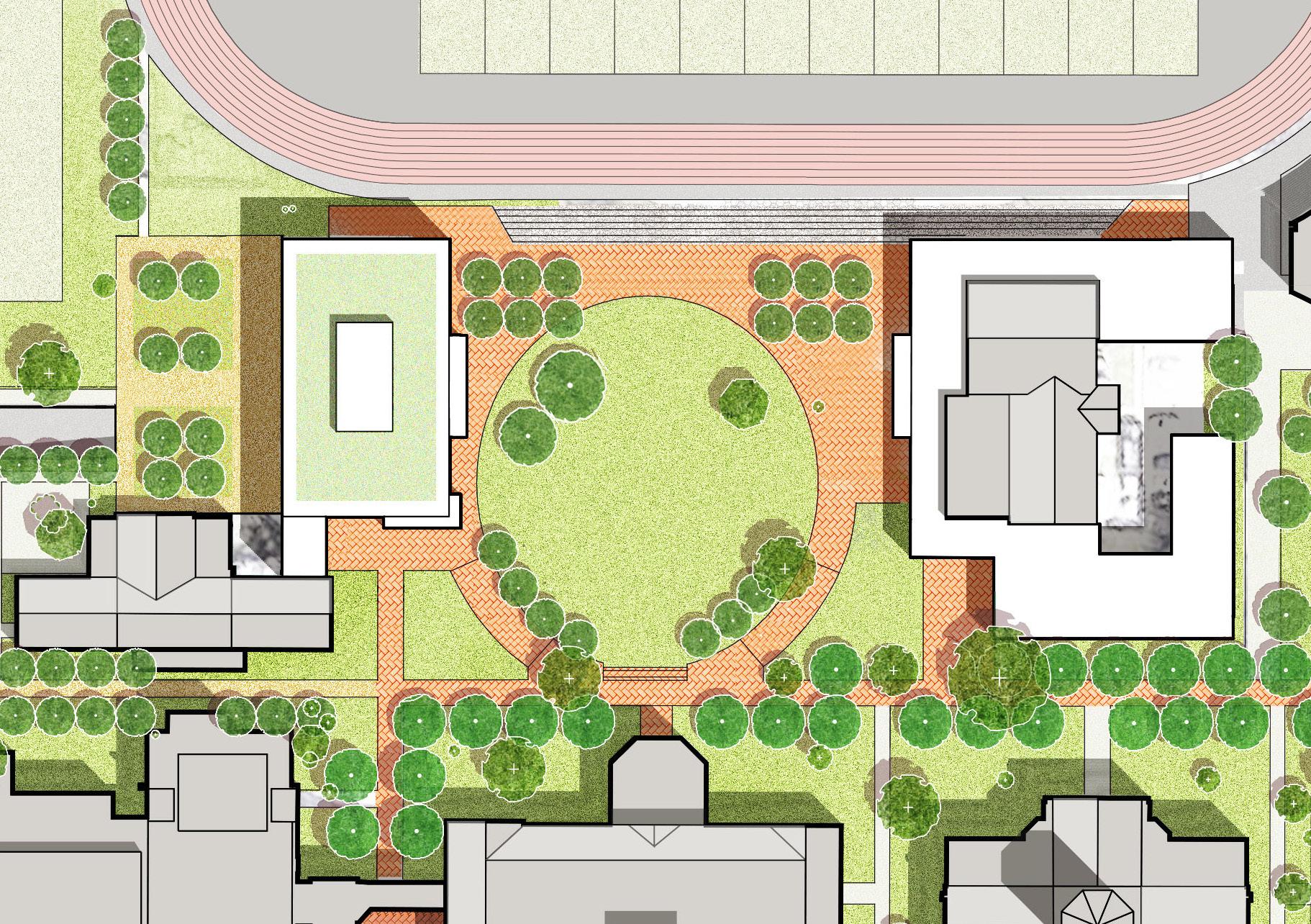 • Enhancement of existing open spaces, including the College Green and Chapel Commons (existing open space east of Egner Memorial Chapel) with landscaping and new walkways.