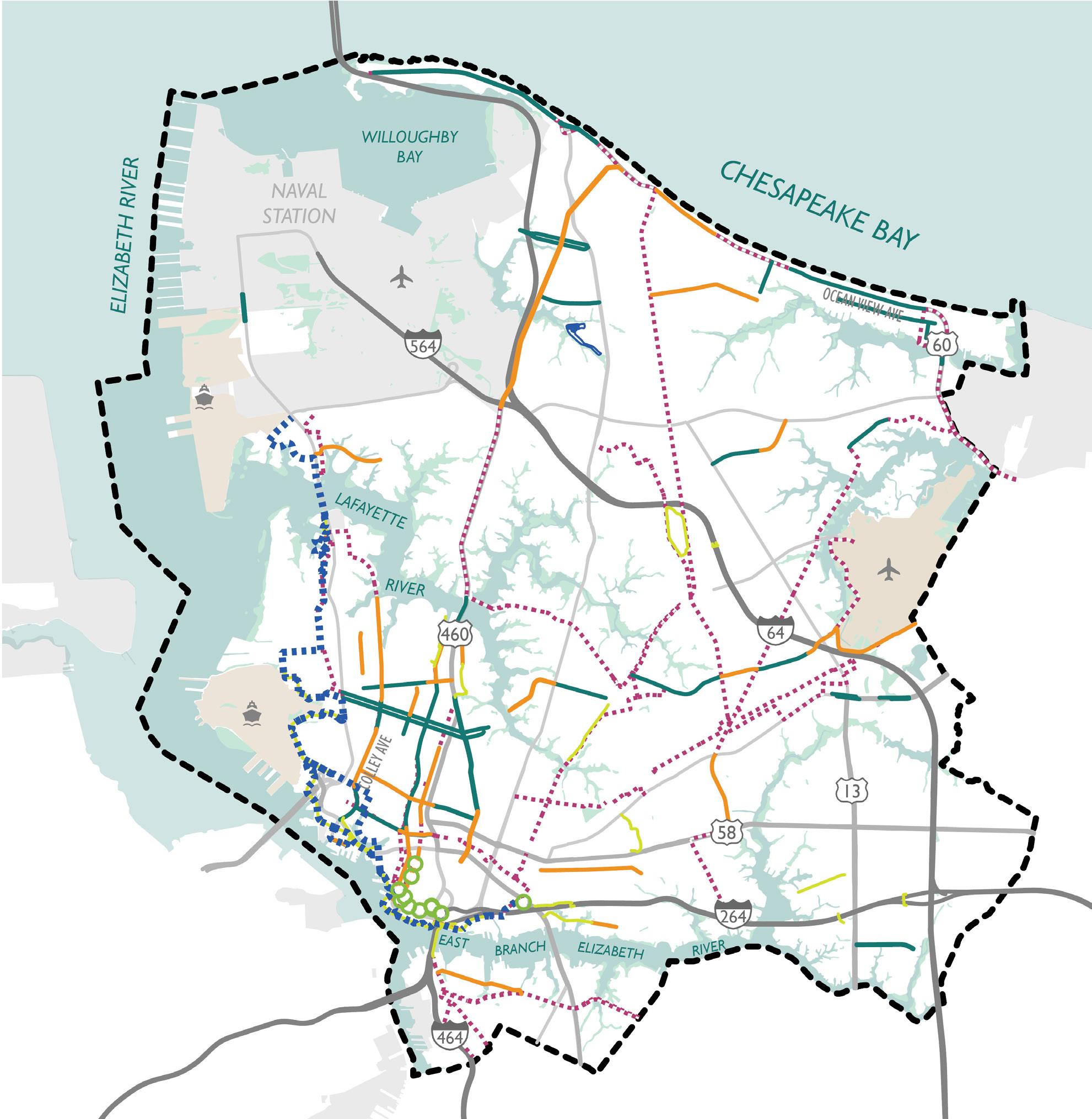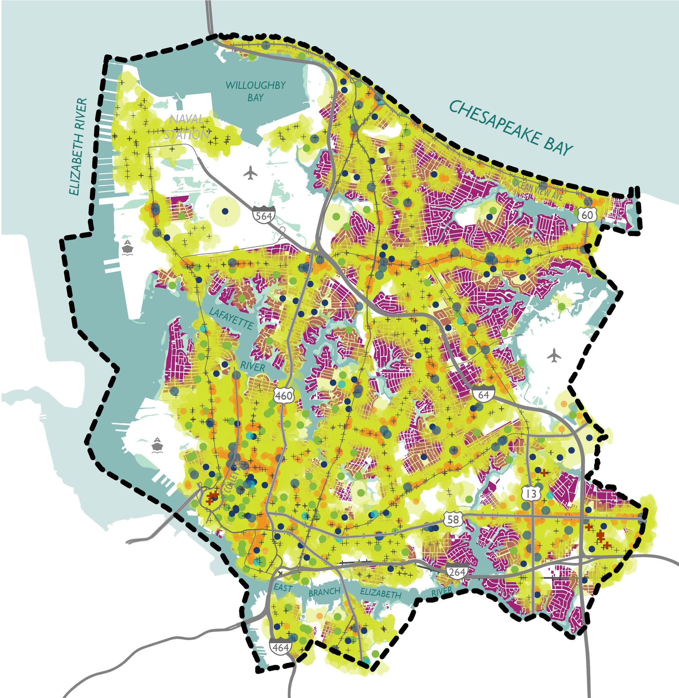 Rooted in the voices of our diverse neighborhoods, NFK2050 outlines a bold vision for a resilient, equitable, and inclusive Norfolk, one that ensures a high quality of life for all current and future residents. This vision honors our city’s identity and history, promotes safe and complete neighborhoods, increases housing opportunities, strengthens workforce development, protects our natural environment, builds citywide resilience, and advances a safe, equitable, and multimodal transportation system.