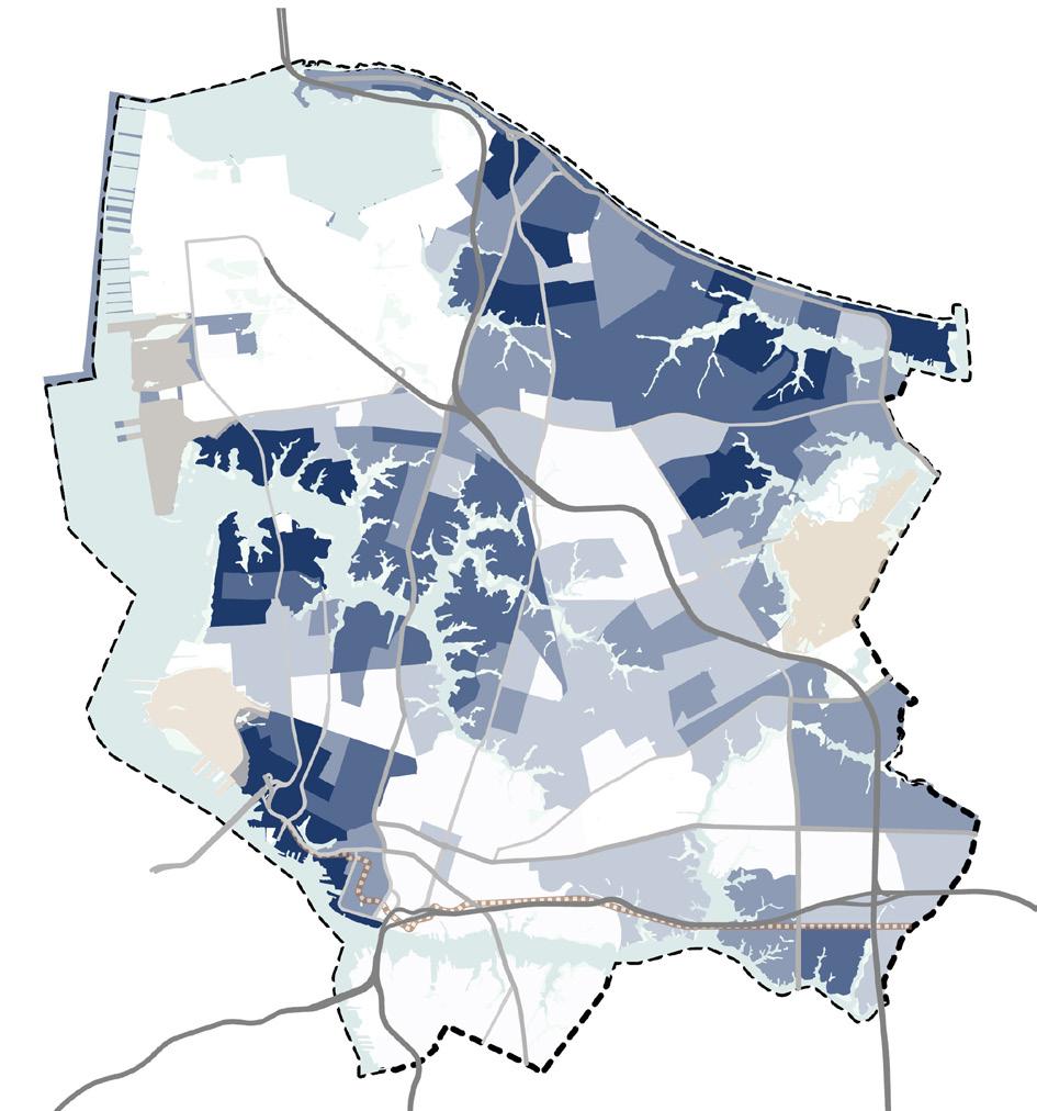 As demonstrated in a consolidated vision for the future, NFK2050’s actions, taken together, can stack up to make meaningful positive change in neighborhoods all over the city. As a Comprehensive Plan, NFK2050 has many interrelated recommendations that may all require incremental work to get there. Moving from here into implementation, timing is imperative. The development of new, highquality, attractive housing options for residents of all incomes on higher ground needs to happen in the near-term, so residents who may choose to relocate can do so without leaving the city where they’re rooted. This housing cannot be built in isolation, but in coordination with community amenities, public realm improvements, and — crucially — multimodal mobility options for new residents to be able to safely and seamlessly get around their neighborhoods and their cities, connected to where they need to go everyday.