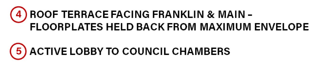 Based on TBD’s analysis, midrange ROM construction costs for the entire City Hall, Mixed Use, Blended Partnership development on Block D is $333 million. The City Hall portion is $153 million including core and shell, fit-out and city-owned site work required. The City Hall portion described here does not include parking costs, which were considered separately and are described below.