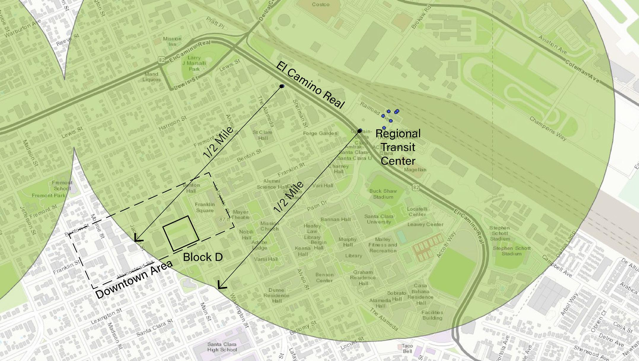 With regard to high costs attributed to the parking structure, note that California law AB 2097 eliminates parking requirements within one-half mile of high-quality transit, which includes Block D. Given increased opportunities for remote work, availability of public transit use, and expected availability of local Downtown destinations, reducing the overall parking garage structure size might be considered as a way to reduce construction cost.