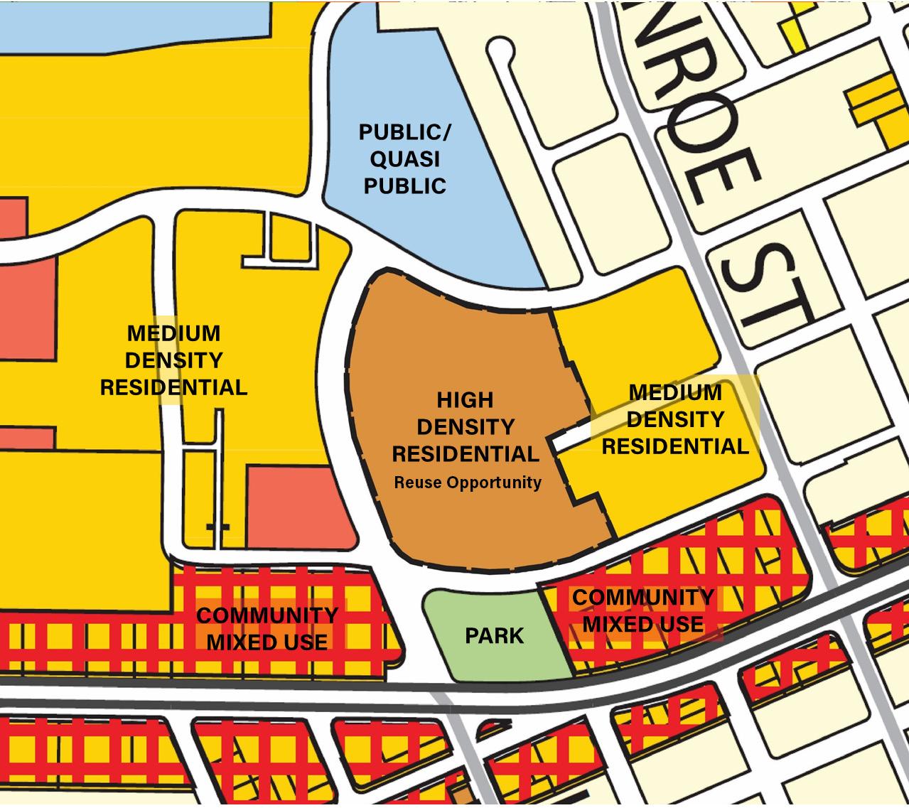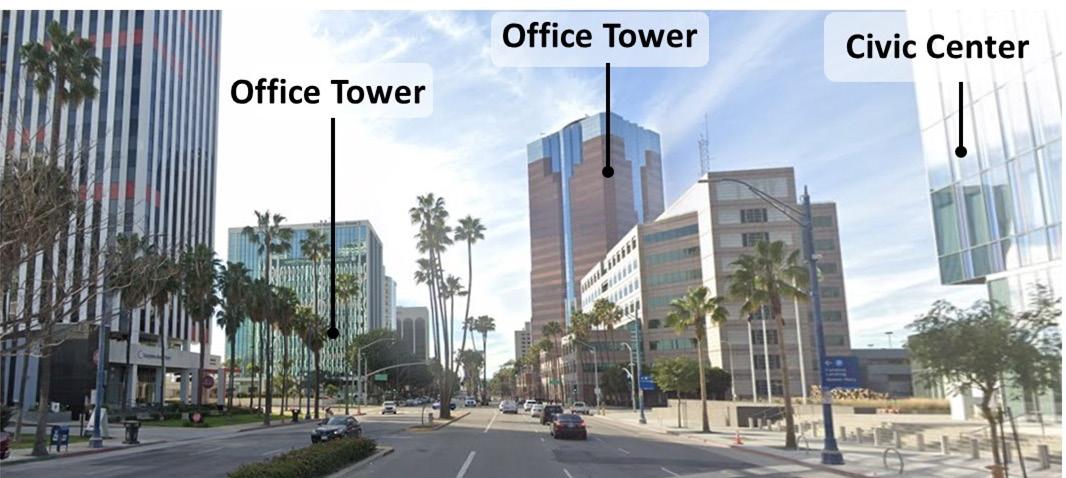 Precise Plan acknowledges the possibility of a relocated Civic Center in the Downtown Area, as it promotes Downtown as a highintensity mixed-use residential and employment district with a mix of office, public, and commercial amenities.