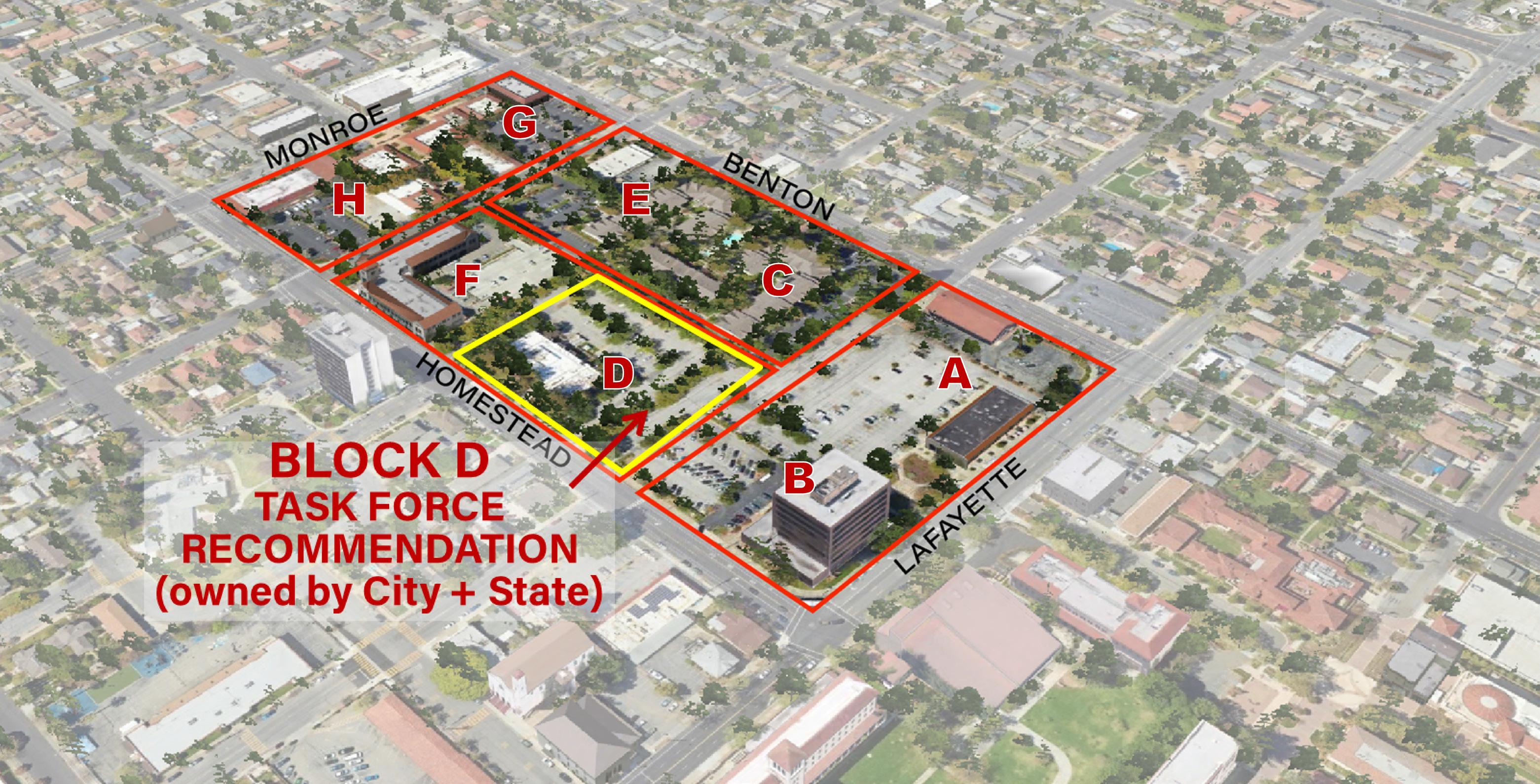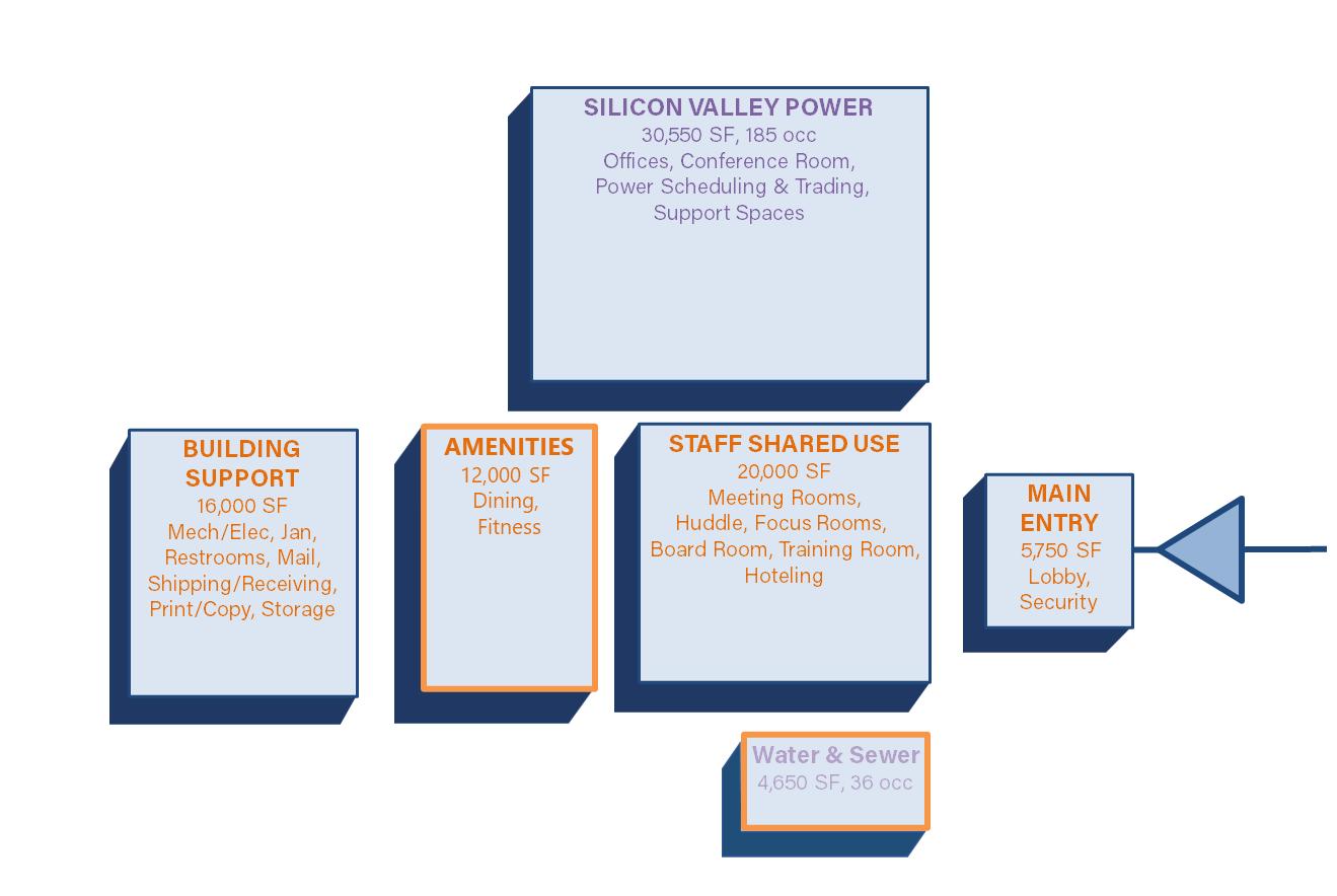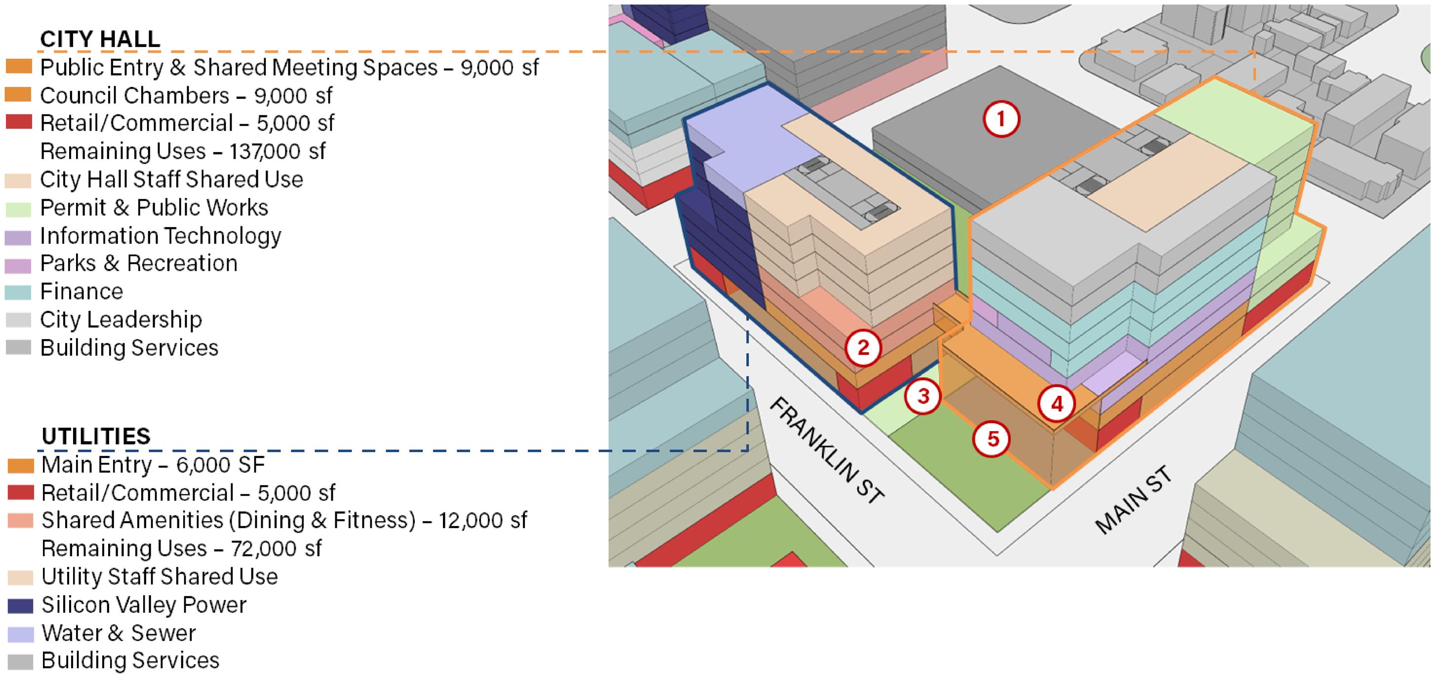 The DCTF thought that uses and activities associated with the Utilities Building would not be a priority given Block D’s size and limited development potential. Furthermore, that Silicon Valley Power would have sufficient options and resources to address future needs on their own accord, without being part of a new Civic Center.