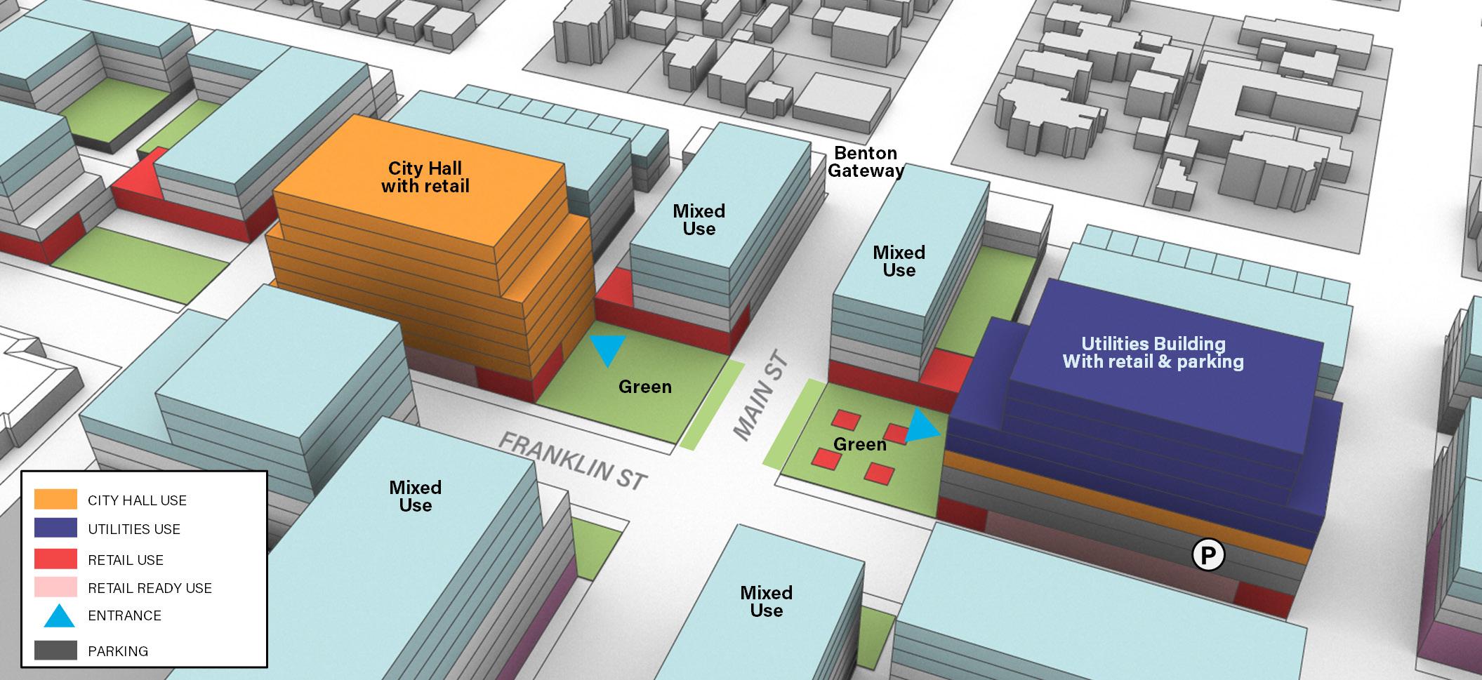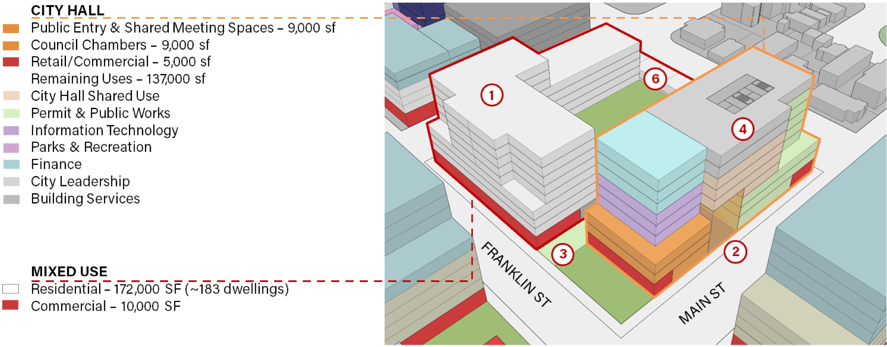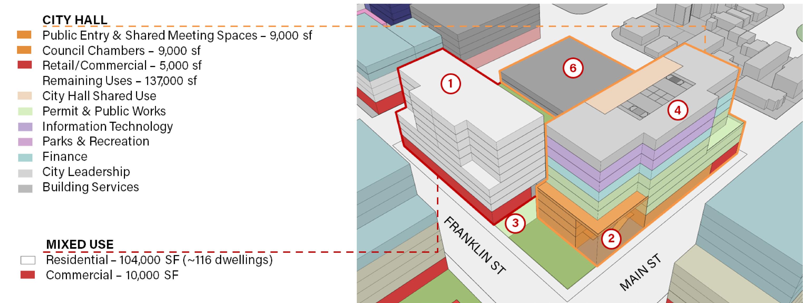 The design and program that was clearly preferred by the DCTF combined a new City Hall with a maximized mixed use building on the remainder of the