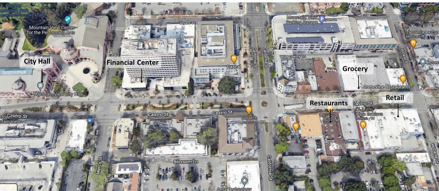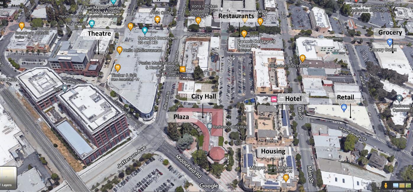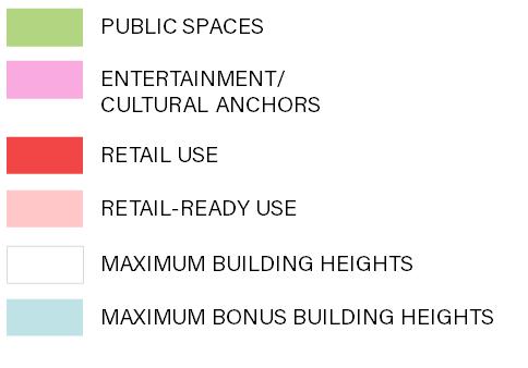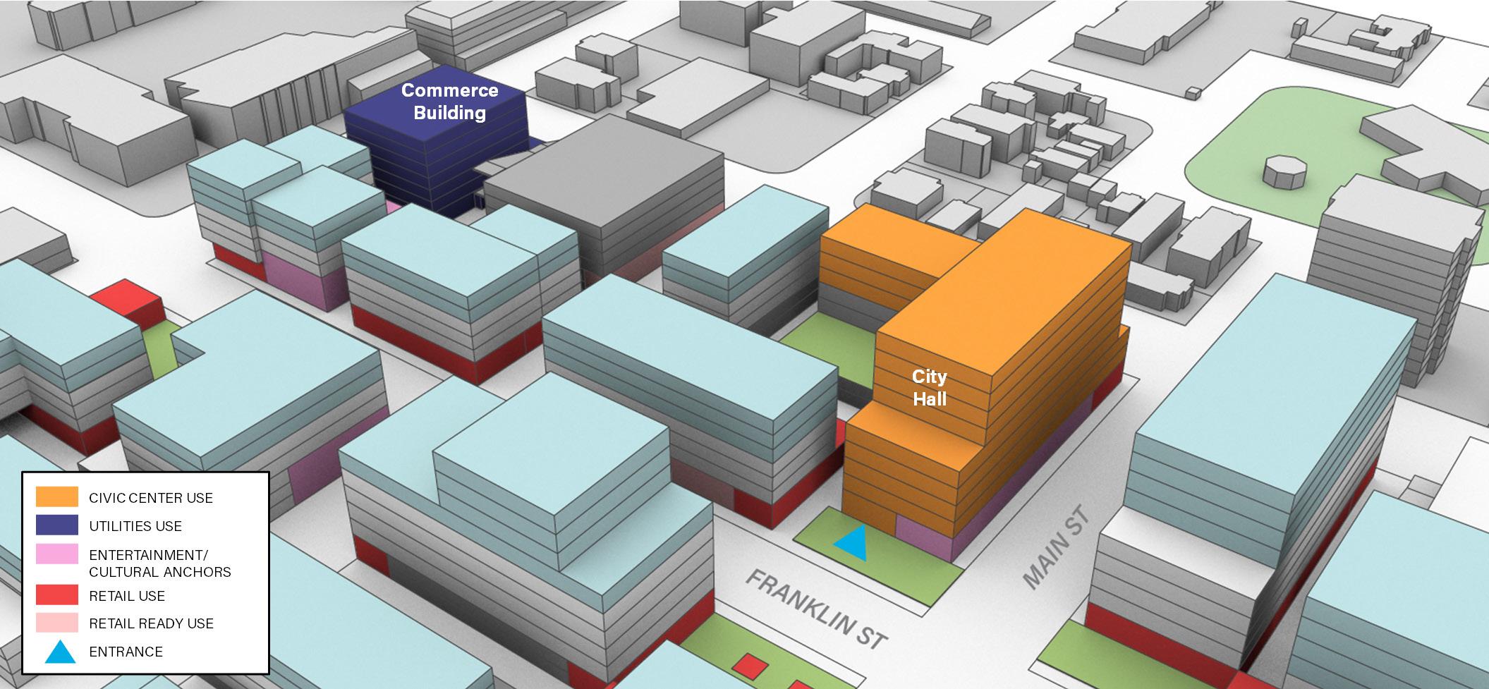 Land Use Mix and Activation - in different locations, a new Civic Center should increase and diversify activity in Downtown; Placemaking - the Civic Center should bring about a sense of place along street edges and public spaces;