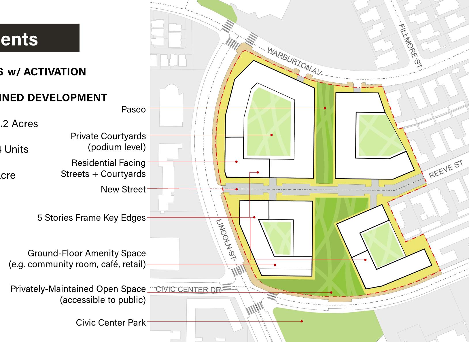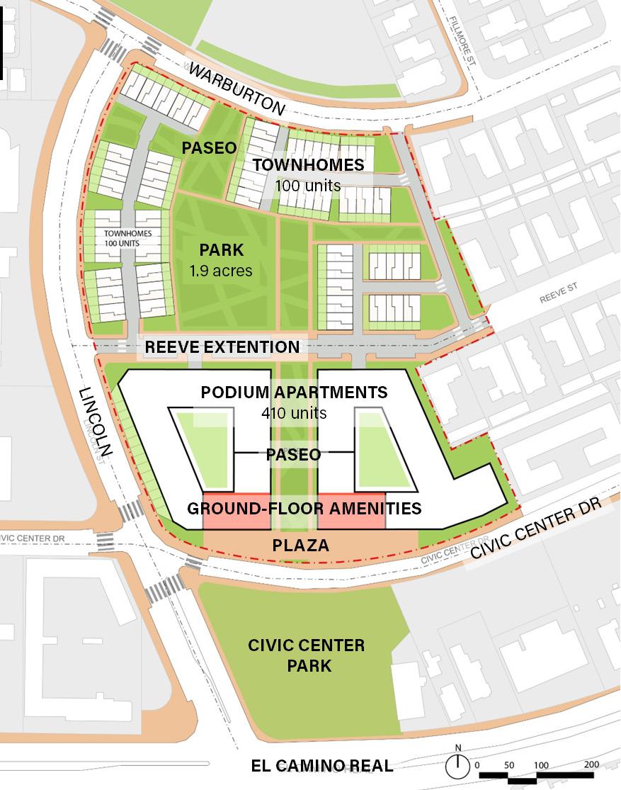 as providing community open space and activating Civic Center Park and the El Camino Real corridor.