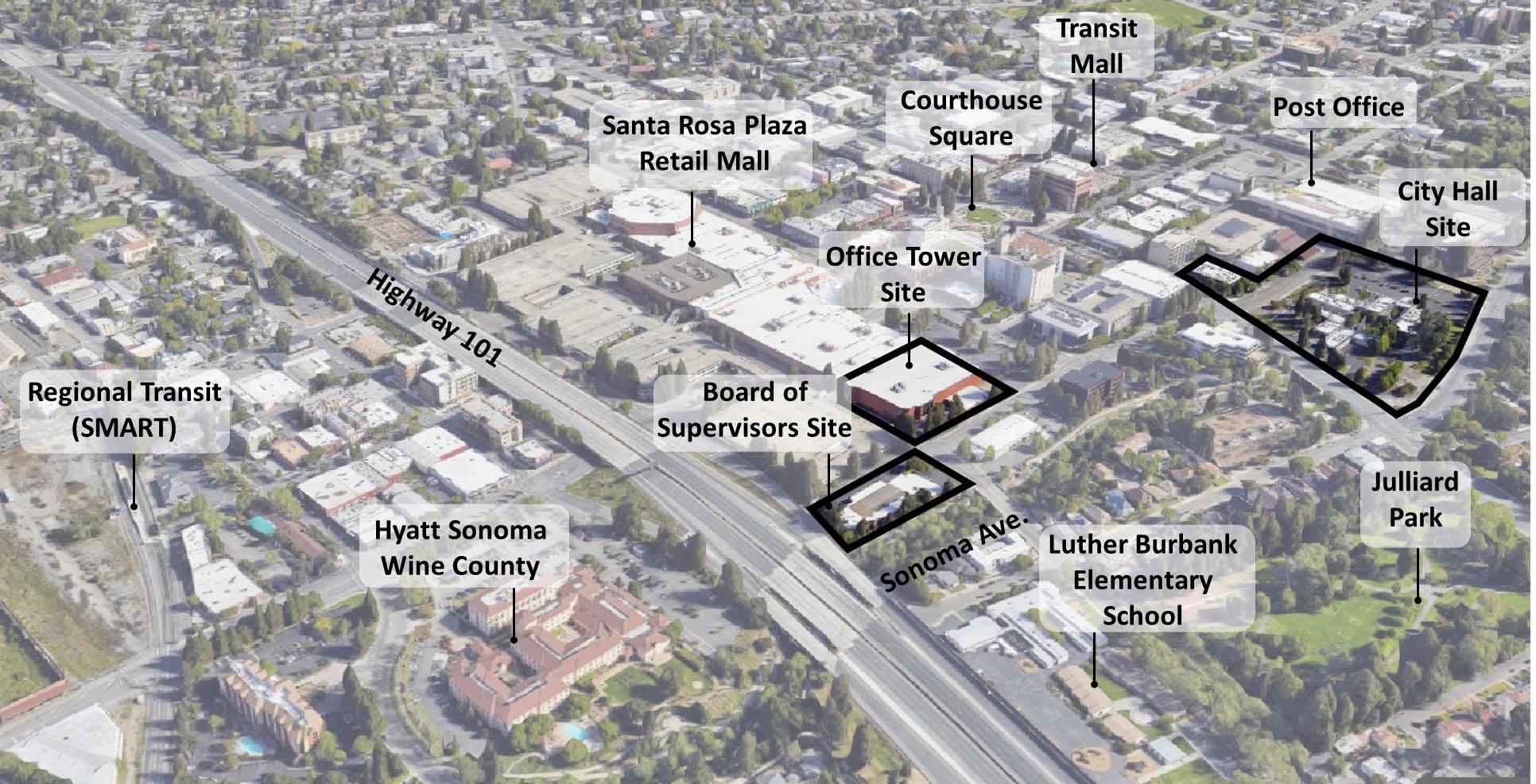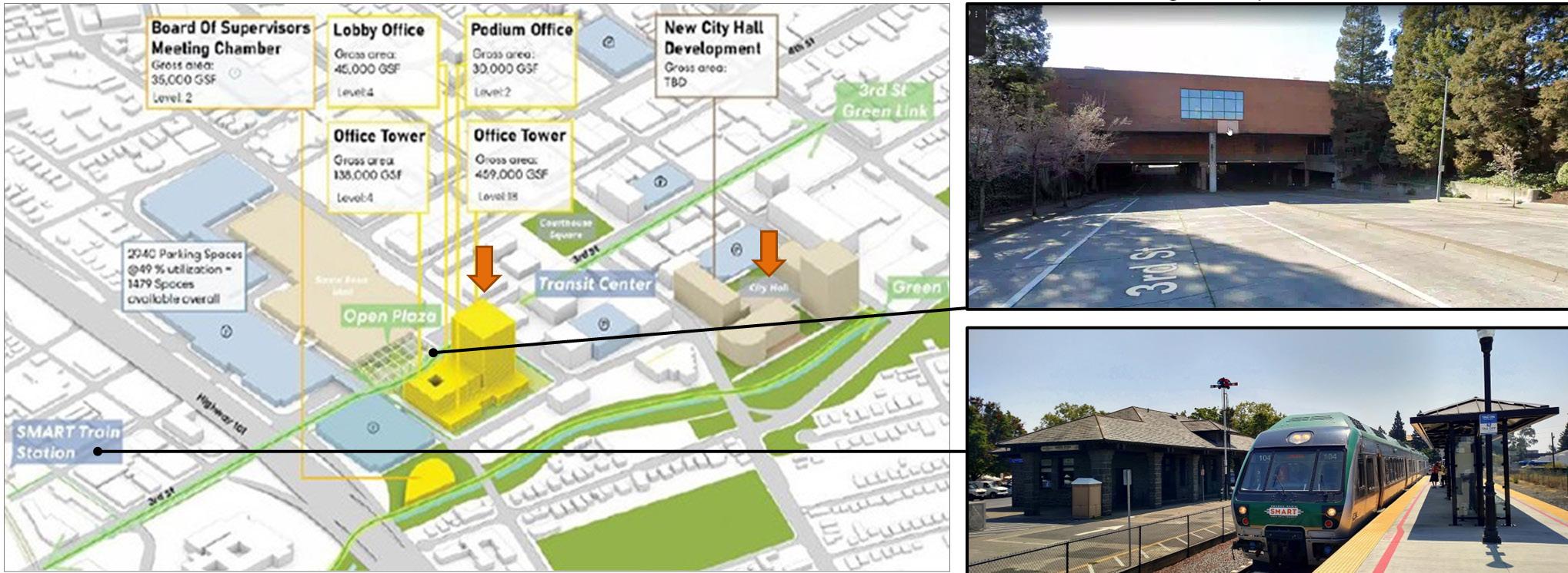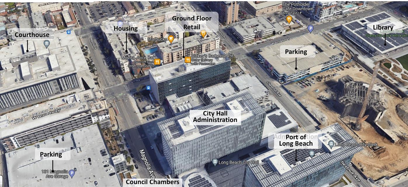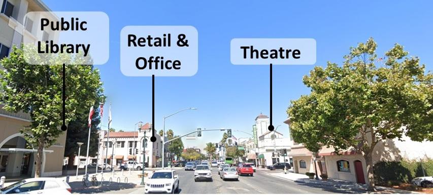 The Civic Center Relocation Study can also serve the purpose of demonstrating the objectives of the Downtown Precise Plan. Design studies illustrate how a relocated Civic Center could conform to and help implement Downtown Precise Plan policies and Downtown Form-Based Code related to: