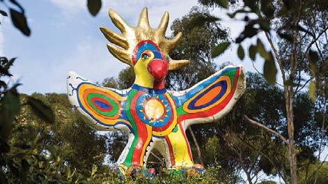 De Saint Phalle’s Sun God was the first work commissioned by the Stuart Collec on and was her first outdoor commission in America. The exuberantly colored, fourteen-foot bird is placed atop a fi eenfoot concrete arch and sited on a grassy area between the Faculty Club and Mandeville Auditorium.