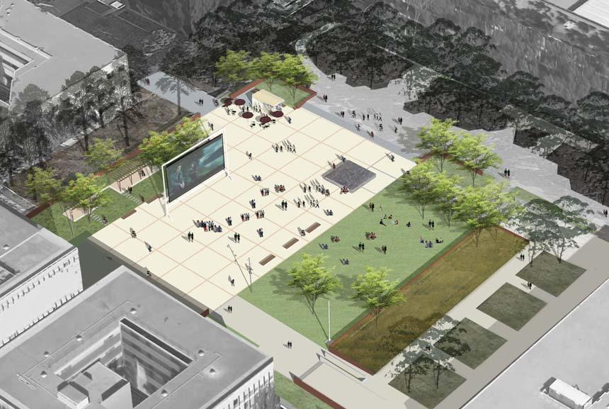 The concept for Town Square explores preserving and enhancing the Stuart Collec on piece, while crea ng a more ac ve pubic space to host various programs and ac vi es.