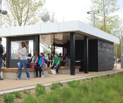 A fes val or fair with individual tents organized on the central paving area is big enough for several stalls while leaving the lawn as a unprogrammed space.