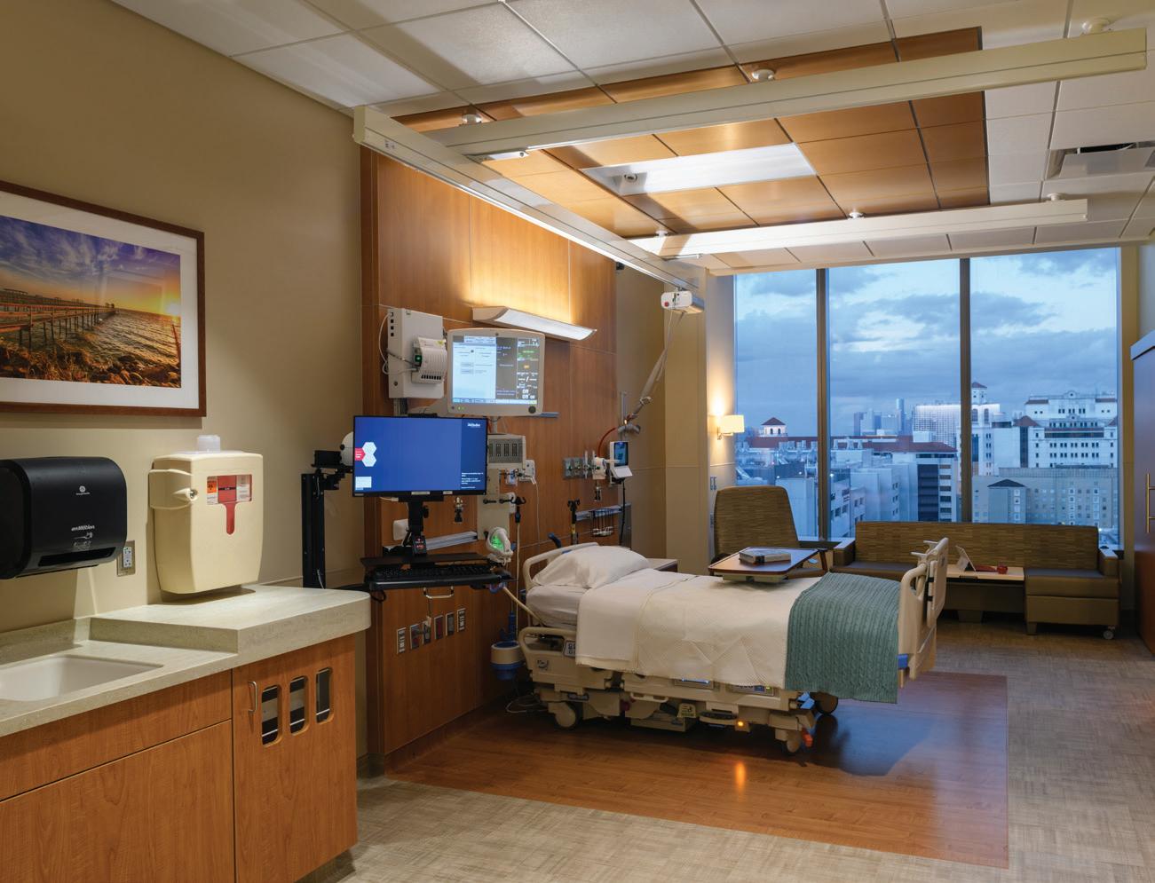 Walter Tower Level 12 is a 40,750-SF Universal Care Unit consisting of 36 patient rooms and support spaces with finishes congruent with other areas of Walter Tower. Level 12 was formerly shell space with all major utilities built to the space. The floors above and below were fully occupied patient spaces (Level 11 is a Neurological ICU; Level 14 is a Bone Marrow Transplant unit). Due to the ongoing operations of the floors and high acuity level of the patients, minimal disruption was essential. Some access to these floors and other areas of the hospital were required but was minimized. For continuity of systems in Walter Tower and across campus, some systems noted in the specifications required a specific vendor. These include PEVCO – pneumatic tube, Schneider Electric – building automation, Fire Safe –fire alarm, Walker Low Voltage – overhead paging, Rauland Borg Responder 5 – nurse call, ETS – medical gas testing. “The Walter Tower Level 12 Build Out was a great opportunity to develop a new relationship between Houston Methodist Hospital and Bellows. Transparent communication and the ability to react to user requests and challenges related to the COVID-19 pandemic enabled Bellows to deliver a successful project and provide a much needed intensive care unit for the hospital”, said Abigail Follmar AIA, Jacobs Project Manager.