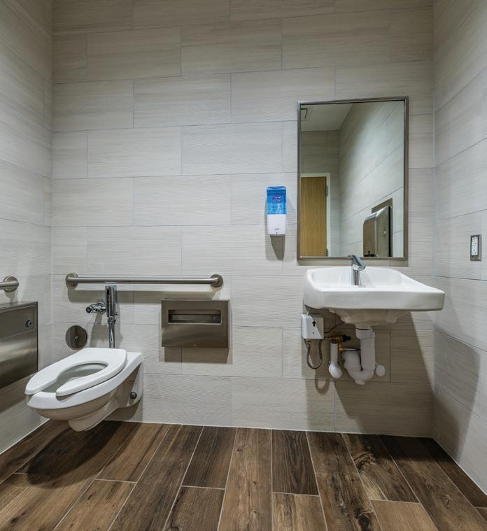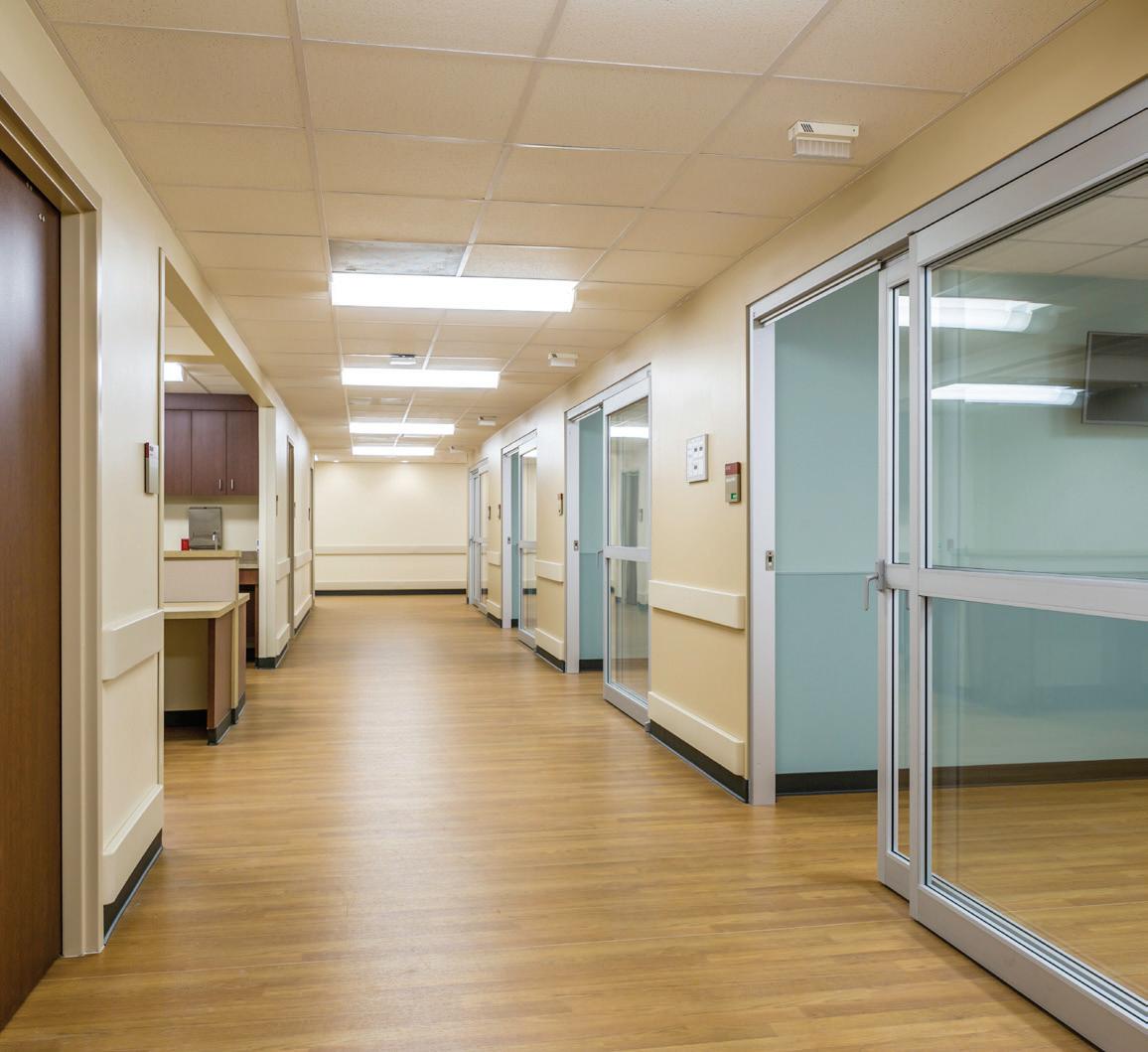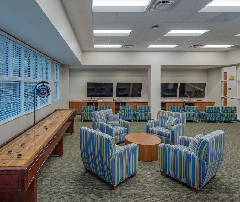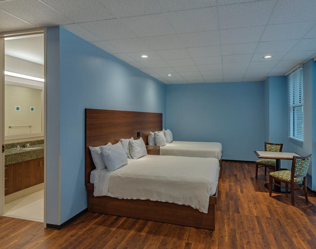 The Ronald McDonald Houston Charities’ Behind Every Door three-phased renovation project addressed an increasing need to provide a home away from home to a growing number of families seeking medical care for their critically-ill children, upgraded infrastructure, and a reconfigured floor plan. The ribbon-cutting ceremony on September 27, 2018 unveiled the renovated 50,000-SF flagship building, also built by Bellows, and the newly-built 16,000-SF two-story tower. The first phase involved constructing a new two-story building over an existing surface parking lot. The expansion added 20 new bedrooms. The second phase included the renovation of the 50,000-SF original building with updates to critical infrastructure, including HVAC/mechanical, electrical, plumbing, and structural elements. With backup generators, among other features, Holcombe House has the capability to keep its residents comfortable and safe if an outage occurs. The renovation included a new feature wall that extends from the first floor to the ceiling of the three-floor lobby. A larger kitchen with high-end appliances was added to better serve the families and volunteers. New playrooms and sports rooms as well as a fully-dedicated classroom were also refreshed. To increase energy efficiency, all of the existing curtainwall glass and punched windows were retrofitted with glazing pocket extrusions and new insulated glass was installed. For the third phase, the 50 existing bedrooms were demolished down to bare studs, revamped, and now feature new flooring, millwork, and tile work as well as updated appliances, fixtures, and technological upgrades.
