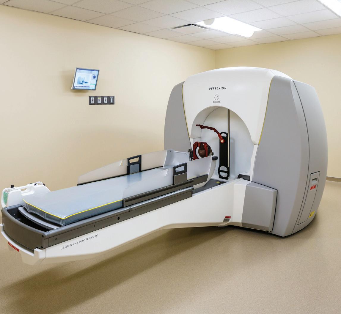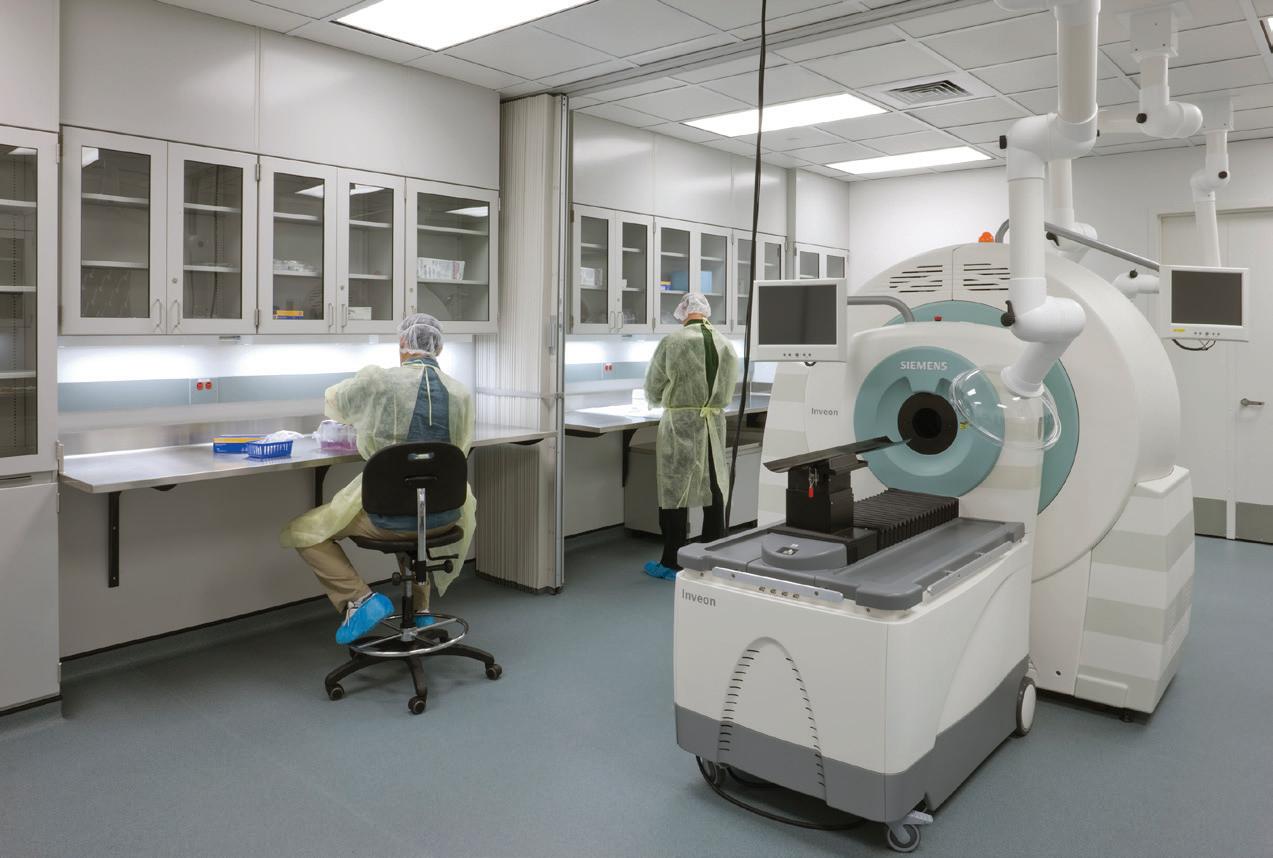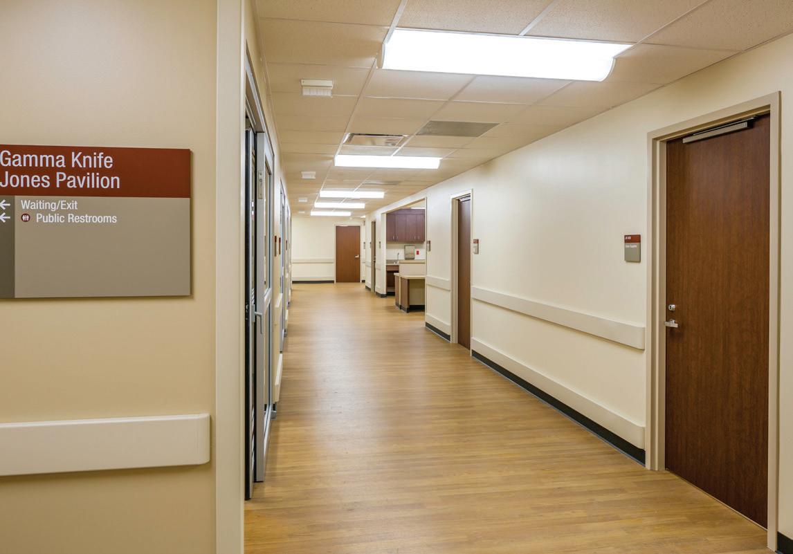 This renovation project occurred in two phases. Phase I consisted of relocating the existing Gamma Knife Department from the ground level of the Robertson Pavilion to the Jones Pavilion basement. The Gamma Knife Department moved into the former Occupational Health Department. Phase II involved demolition and reconstruction of the area vacated by the Occupational Health and Neurophysiology Departments. The renovated space is now the co-location of the Gamma Knife and Neurophysiology Departments. The total renovated footprint for all three departments is 12,208 GSF. All of the water/drain lines above the Gamma Knife room had to be relocated which posed a unique and challenging experience since these utility lines served the entire building. Rerouting of the supply and return air trunks created another hurdle since these trunk lines served occupied space in the basement. Due to the weight of the equipment, the existing slab on grade had to be removed and reinforced in order to support a load of 50 tons. With this site located in the basement, 30 yards of concrete had to be manually pushed one block through an active hospital, down the elevator, to the basement.