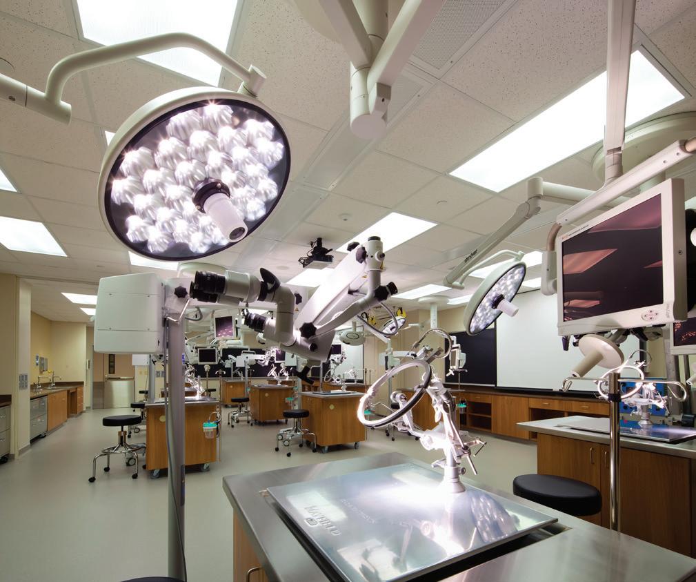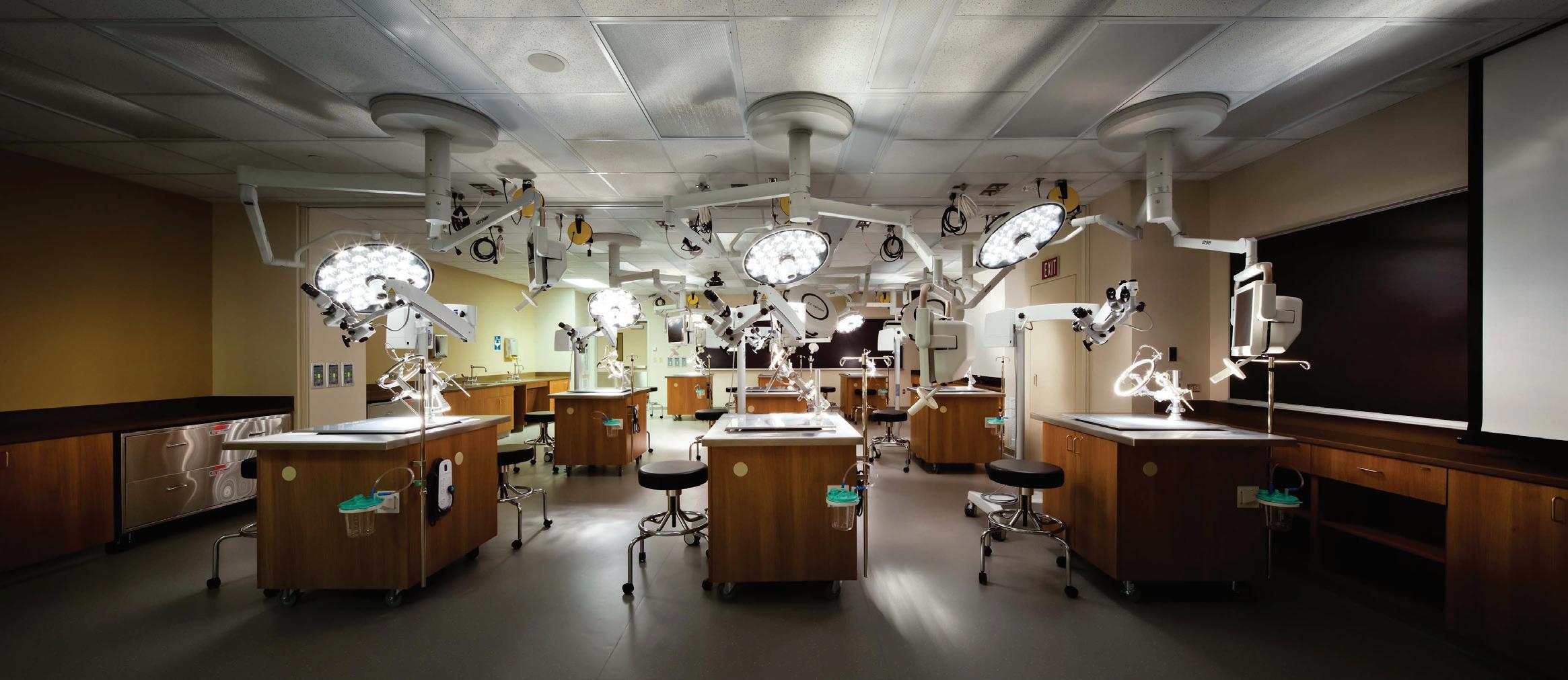 The Baylor Gross Anatomy project is a specialized surgical lab classroom located within the anatomy lab that consists of 14,000 SF located on one level. Bellows demolished 80% of the existing morgue and completely demolished eight classrooms. Four classrooms remained operational while the other four were renovated to keep the laboratory operational for the duration of the project. Coordinating all of the MEP systems presented the team many challenges due to the ceiling height required to accommodate the operating room light and monitor booms. Through careful coordination, it was successfully constructed with no disturbance to the ongoing operations in adjacent labs. Bellows built custom neurological anatomy carts to house all electronics including audio/visual and endoscope equipment. The neuroanatomy portion of the lab (2 of the 8 classrooms) is a state-of-the-art laboratory for teaching new leading-edge neurosurgery techniques. The neuro-anatomy lab contained custom ceiling panels, surgical carts, (11) Stryker OR lights with state-of-the-art cameras integrated in the OR lights and serves Nicholas B. Levine, M.D. with MD Anderson.
