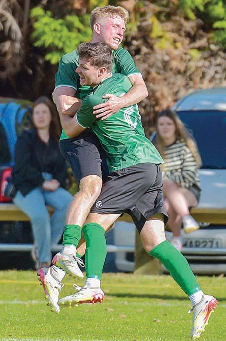 Right: Tyron Curtis (right) celebrates his second goal of the game with Flynn McCaul. Photo: Imray’s Snaps.