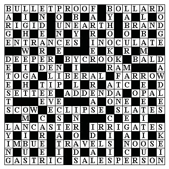 20. Channel (4) 22. Empty (7) 24. Unpowered aircraft (6) 26. For each (3) 28. Hidden (5) 29. Verbal retort (7) 32. Hang down (5) 33. Meadow (3) 34. Vessel (3) 35. Record (3) 36. Of the nose (5) 37. Sea god (7) 38. Bird of prey (5) 39. Sea fish (3) 41. Make redundant (3,3) 42. Smooth silk (7) 44. Imprint vividly (4)