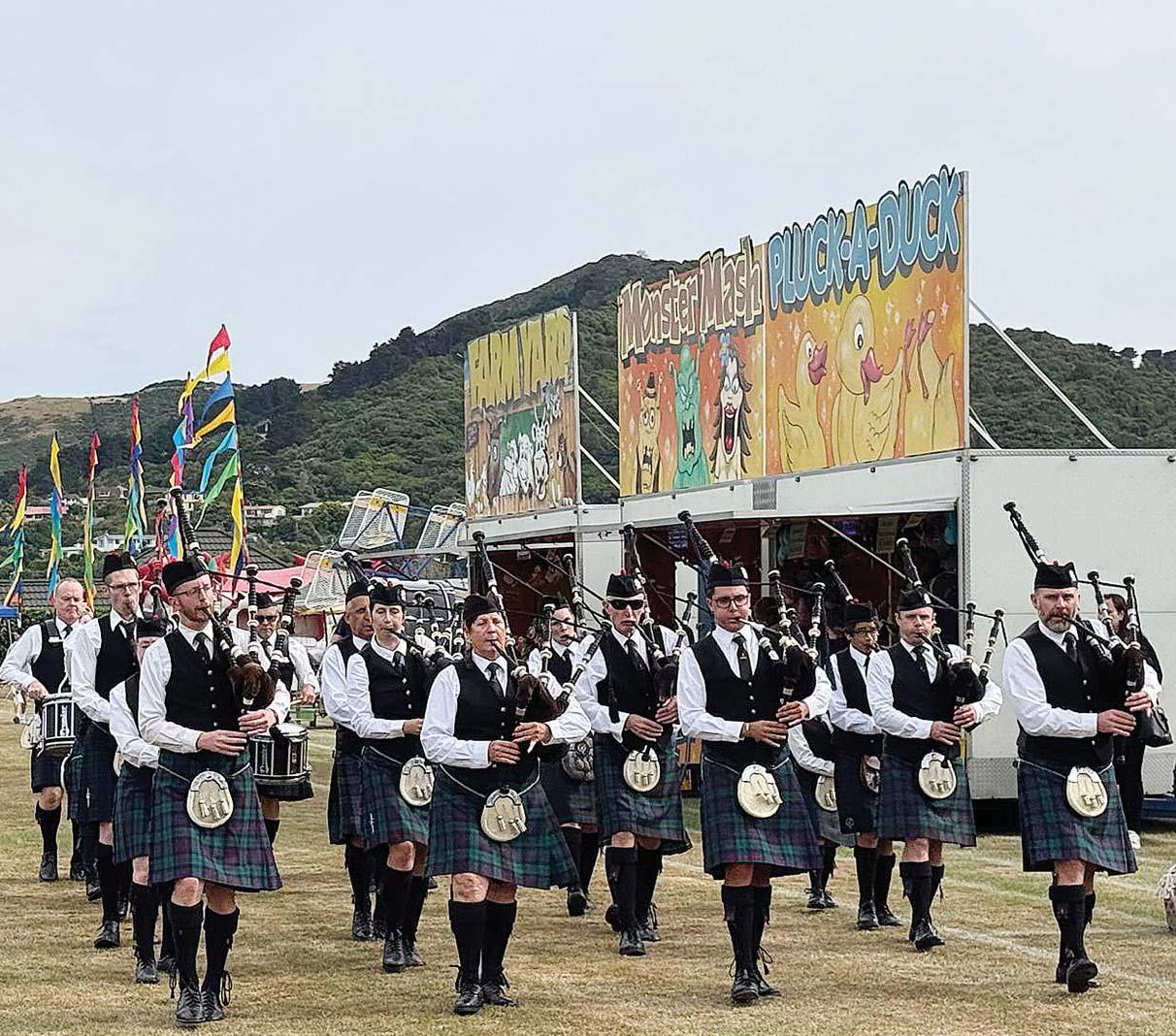 The Wellington Red Hackle Band getting last year’s Karori Karnival off to a great start. Photo: Supplied.