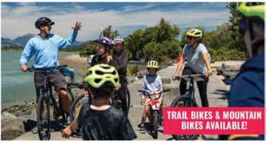 As the working year winds down, summer arrives - and Nelson Tasman’s warm climate and stunning scenery are calling. T huna Beach Holiday Park stretches along 1km of coastline, offering 22 hectares as your base to explore from. In this popular biking region, the Park sits beside a tributary of The Great Taste Trail and provides on-site bike hire through Cycle Nelson, secure bike storage and a wash station, plus regular shuttles to trails across the region.