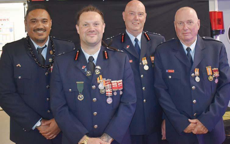 The four recipients of long service and good conduct medals (from left) Mati Soi, Ahron Eastall, Peter Thompson and Cliff George. Photo: Frank Neill.