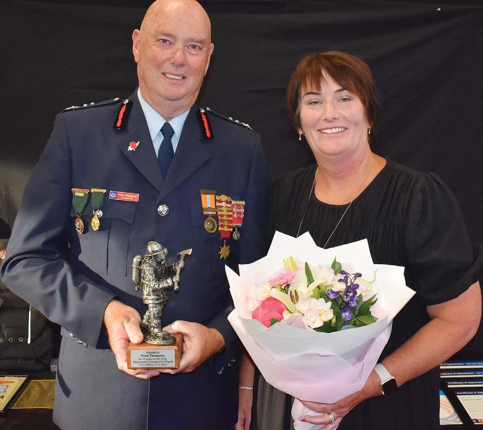 The Wainuiomata Volunteer Fire Brigade’s Chief Fire Officer Peter Thompson and his wife Rachel were honoured for their service to the brigade at the brigade’s honours evening on 22 November.