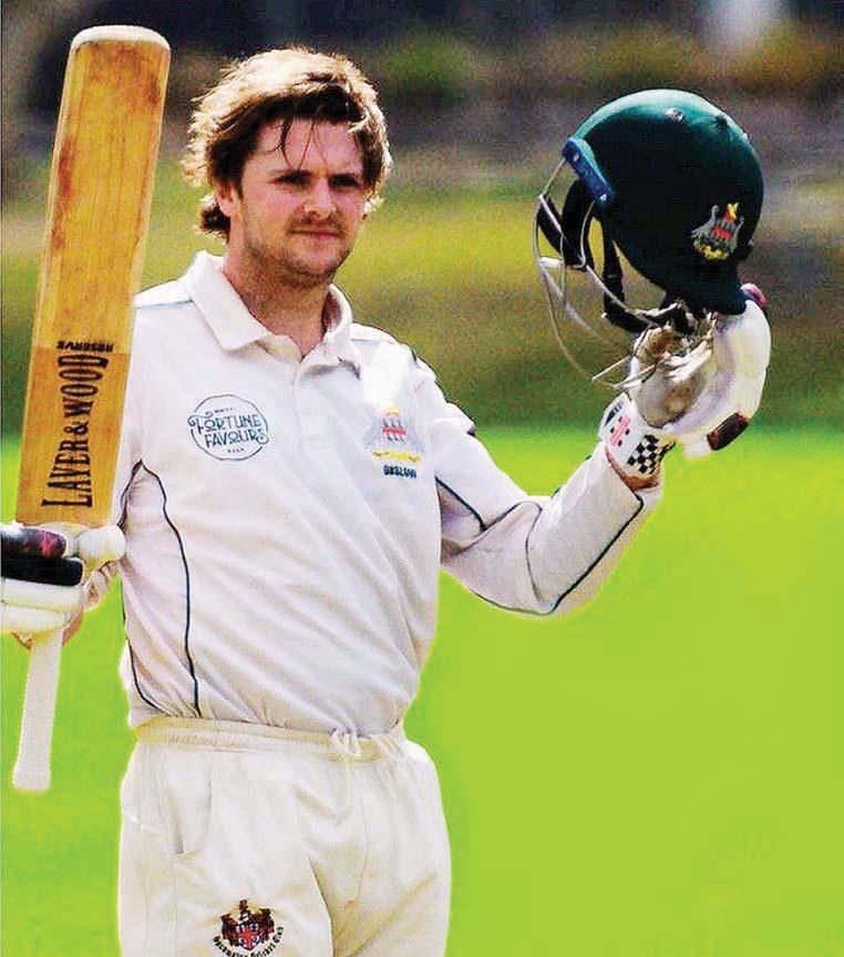 Micah Conroy celebrates scoring a century for Onslow on 28 March. Photo: Supplied.
