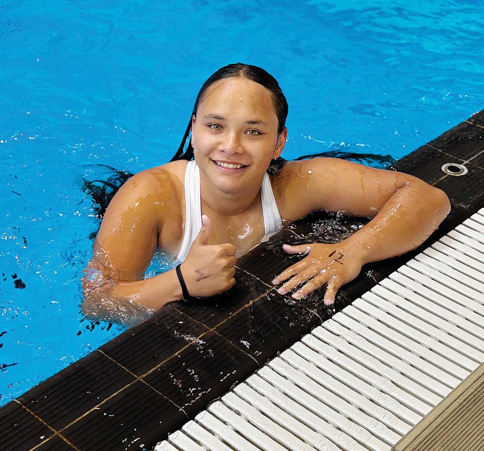 Zerenity Mill Simpson about to leave the pool after making her big splash.