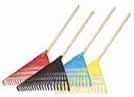 Wide 20 tooth head for easy raking. Sturdy wooden handle. Assorted colours available in black, blue, red or yellow.