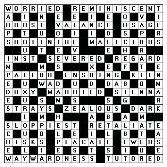 24. Joke (3) 26. Cur (3) 29. Choose (5) 31.Unwelcome party guest (11)
