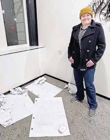 Ella’s winning piece, entitled The Visual World is Inexhaustible, is a graphite drawing of 120 paper drawings on graphite interwoven with steel wire that cascades elegantly down a wall.